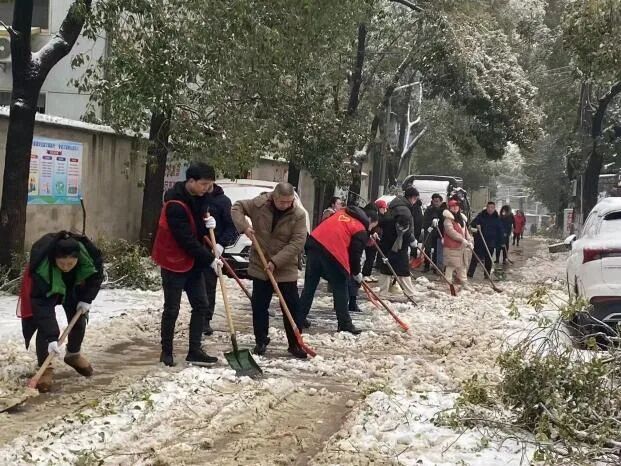以雪为令,雪映党旗红。武汉经开区党员干部和职工群众闻雪而动,迅速投入除冰清雪战役,确保城市运行平稳有序、保障企业群众正常生产生活。