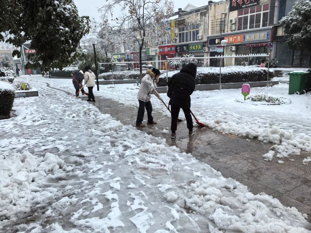 “铲雪除冰,党员先行,我们要再加把劲,为出行居民开辟出一条平坦的安全路。”在薛峰社区商业街和陡埠村村口,一名下沉党员望着路面的积雪,加紧挥动手中的铁锹,“同志们加把劲,让群众安全出行。”2月4日,工委政法委以雪为令、迅速反应,秉着“应下尽下”原则,政法委主要领导带领49名党员、志愿者全力协助薛峰社区、陡埠村做好除雪保障、隐患排查、应急处置、扶贫救困工作。