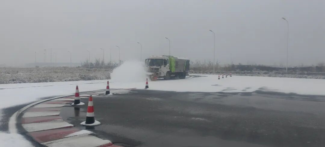 不能因为大雪耽误了企业生产!智能网联和电动汽车产业园负责人马上协调,从纱帽街综合执法中心借来一辆扫雪车,快马加鞭清除赛道上的积雪。扫雪车作业完毕、驶离赛道,刚刚下线的新车驶上赛道,无缝衔接。