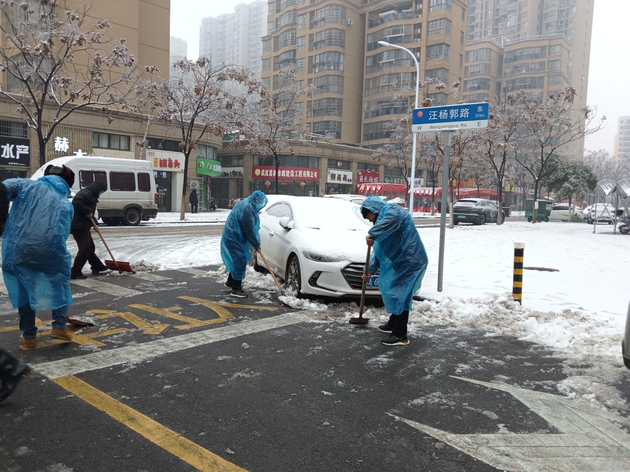 早上8点,来自武汉经开农业发展投资有限公司的党员邱昌斌和其他单位下沉党员自带铁锹等工具,来到绿苑路社区,对辖区内主要道路和小区出入口进行扫雪除冰。