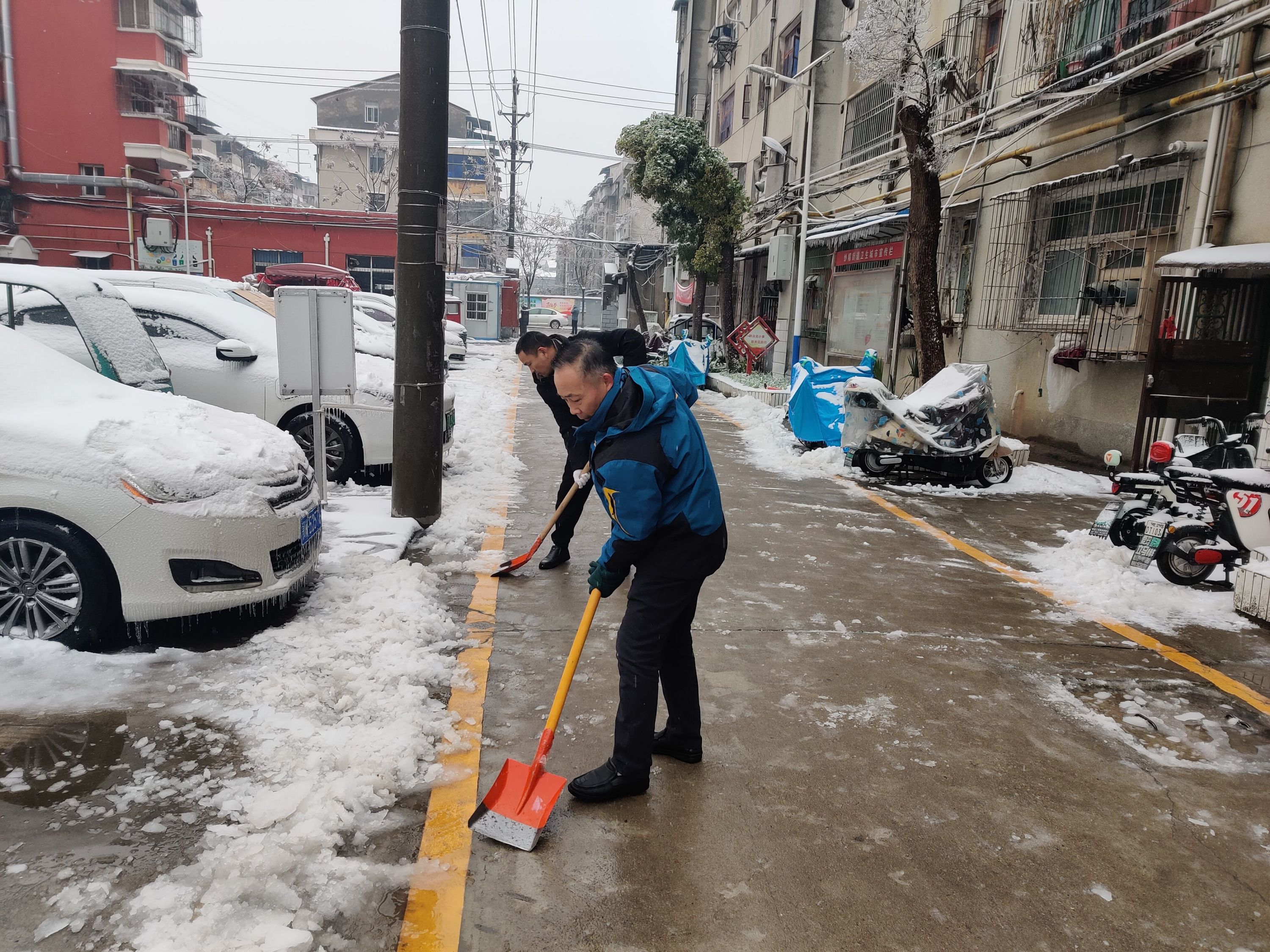 全体人员以雪为令、迅速行动,重点对沿街主干道、人行路口、党群服务中心周边等重点路段清扫积雪,保障交通顺畅和群众出行安全。街道机关干部率先垂范,纷纷下沉到各(村)社区,大家不畏严寒,手持铁锹和扫帚,密切配合、干劲十足,扫雪、铲雪、推雪、清雪,铲冰的声音响成一片。
