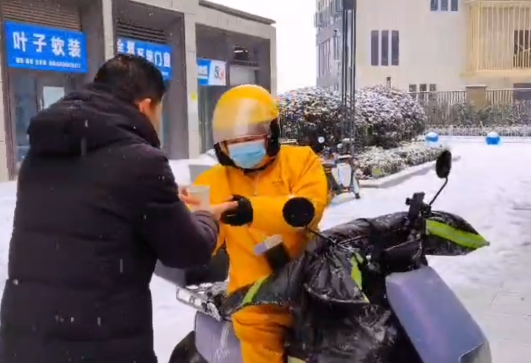 “没想到这么冷的天到你们小区送外卖,还能喝上一杯热乎的姜丝可乐,谢谢你们的爱心可乐!”大雪中,一名外卖小哥接过社区工作人员递上的杯子感激地说。