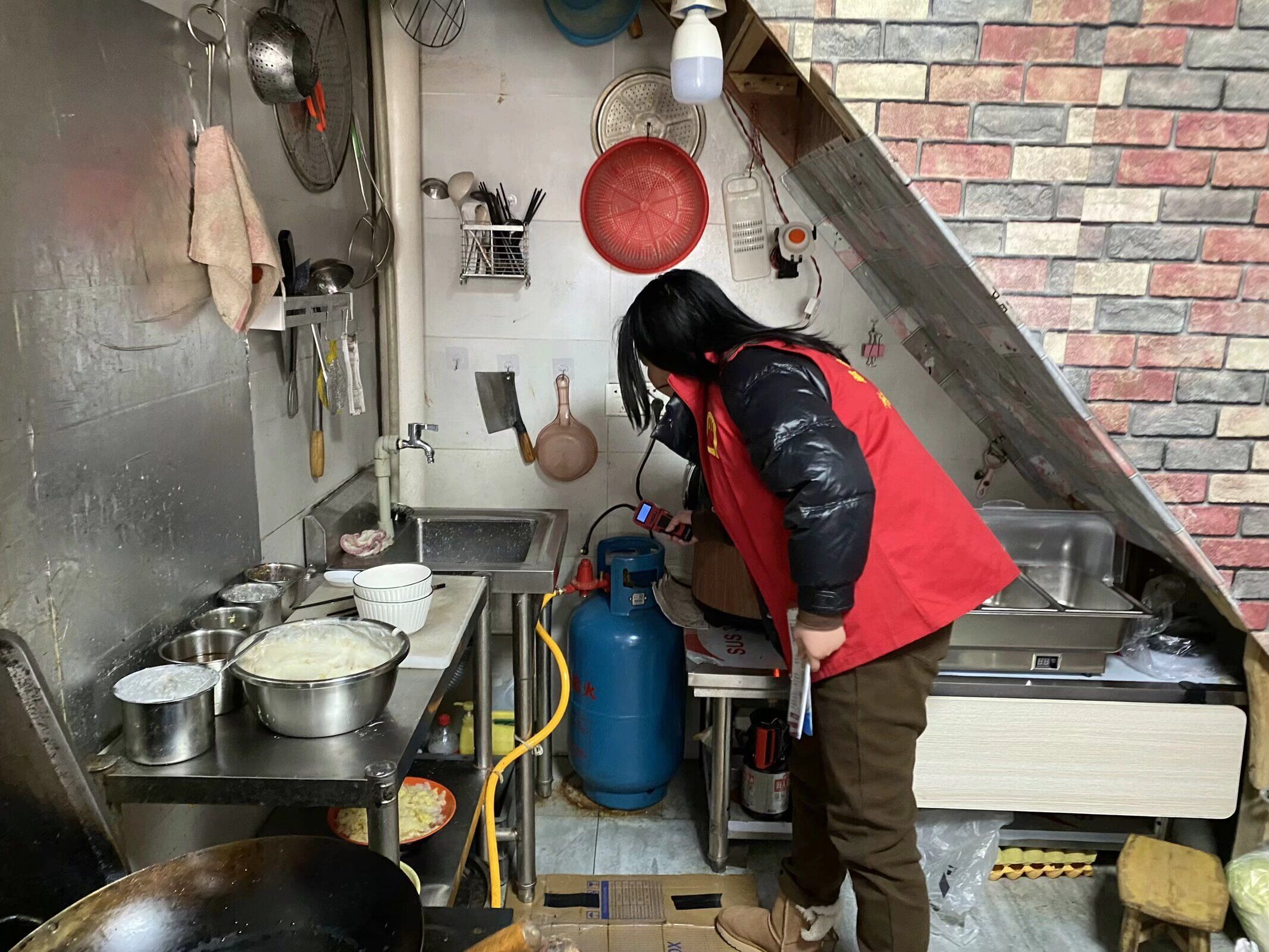 进楼栋,查电动车楼道充电、查消防通道堵塞、查消防设施;进商铺,查燃气、查油污、查三合一,现场协调并解决具体问题,用实际行动将安全保障做实、做细、做好。在“交互式”排查中,大家不漏楼层、不漏点位、不漏场所、不漏设施,守牢居民安全的“最后一道防线”。