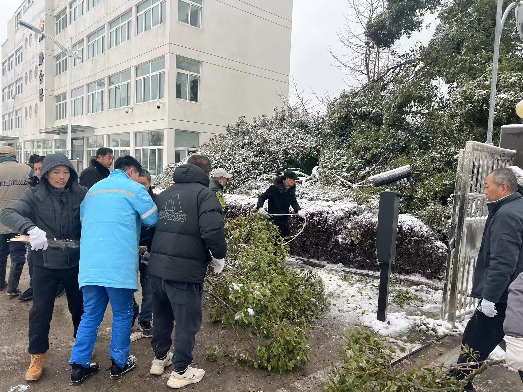 巡查至汉南天然气门站时,发现院内有积雪,断了的树枝堵塞了应急通道,片区路长迅速组织人员帮助场站开展融雪防冻工作,确保燃气安全冬供,应急通道畅通。