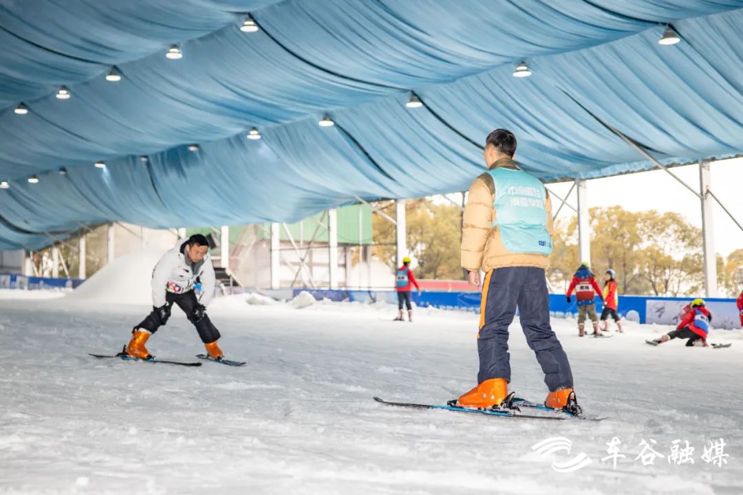滑雪场工作人员介绍,现在客流迎来了小高峰,一天接待1000人左右,“雪服雪板都不够用,而且现在来的人除了尝鲜,都会请教练,进行深入学习”。
