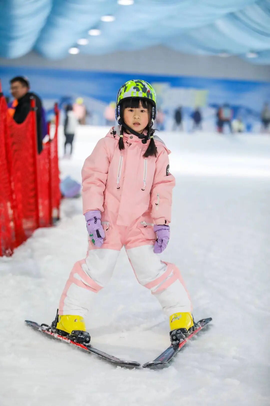 11岁的小朋友小馨在滑雪道上熟练地滑行,“我上了4节课,学会了前刃、后刃、推坡,我觉得滑雪速度很快,很喜欢”。