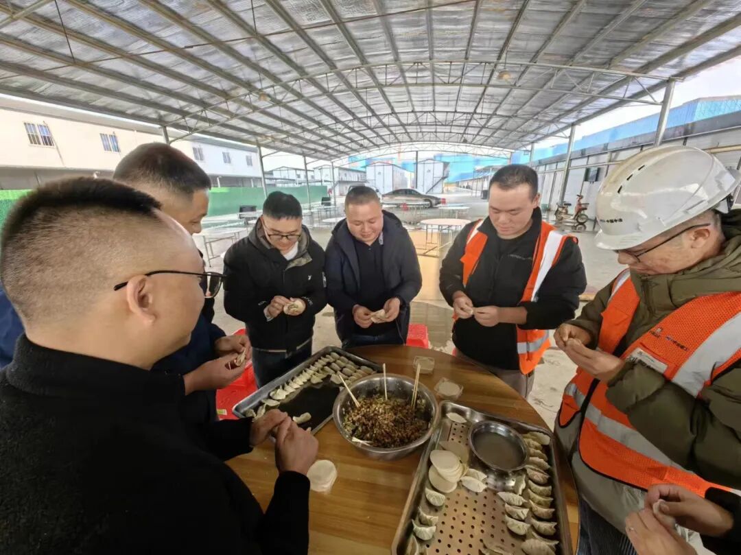 项目攻坚“不打烊”,节日温暖也“不缺席”。除夕当天,军山新城及军山科投负责人到项目建设现场,为坚守一线的建设者们送上慰问物资,与大家共贺新春、共度佳节。“作为项目承建方之一,我们全力保障项目春节不停工。”中冶建工华科项目书记宋晓燕介绍说,为支持春节期间持续生产作业,中冶建工提前备好了过年物资,组织建设者们一起包饺子、吃团年饭、看春晚,以周到的后勤服务,保障他们“过个好年”。“这是我们第一次在外地过年,和大家一起在坚守中奋斗,体会到了不一样的‘年味儿’。”