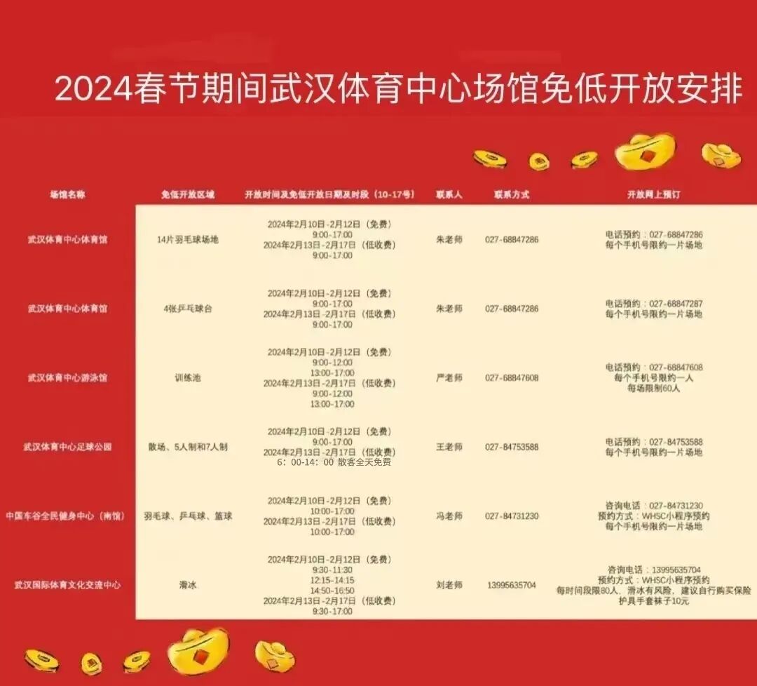 据介绍,为了让市民过一个健康祥和的中国年,武汉体育中心场馆群、中国车谷全民健身中心(南馆)于2月13至17日,每天固定时间段向社会低收费开放。初一至初三,已累计免费接待健身群众4万余人次。