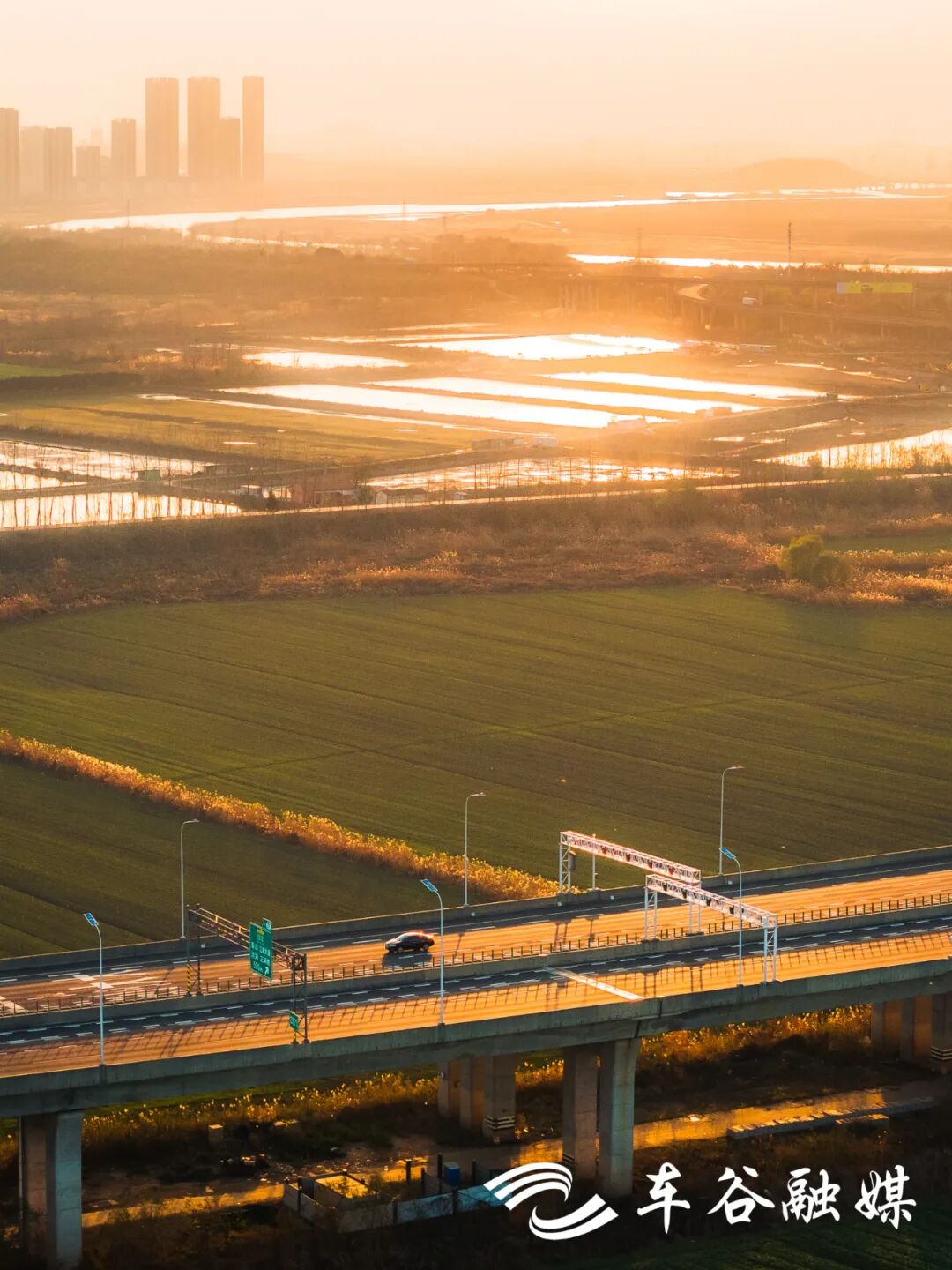路两旁的稻田一望无际