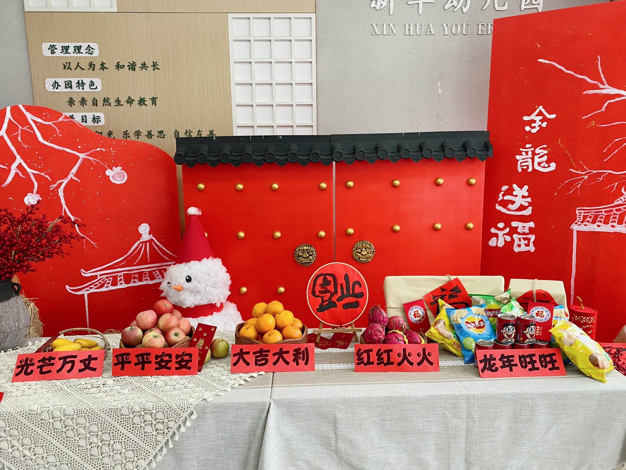 新华幼儿园准备了一场仪式满满的开工仪式——拿一个橘子,寓意“大吉大利”,摸一摸芒果,寓意在新的学期散发光芒万丈……简单的布置、美好的祝福,让老师们以饱满的热情回归工作岗位,共同开启新学期、新征程。