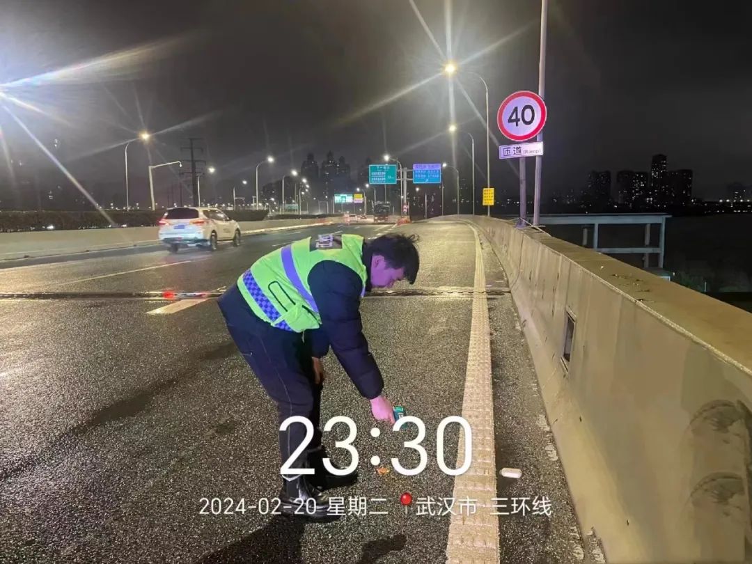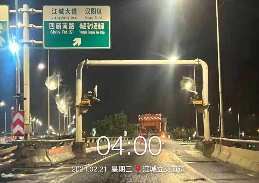 2月20日傍晚,沌阳街道综合执法中心环卫办主任邱庆耀收到了武汉启动低温雨雪冰冻灾害Ⅳ级应急响应的消息,他知道今天将是一个不眠之夜。当晚,他和夜间备勤人员不间断巡查路面情况,对辖区主次干道、下穿通道、东风大道高架等易结冰路段持续布撒融雪剂。“这样的天气容易结冰,我们必需24小时上路检查,提前做出应对措施。”
