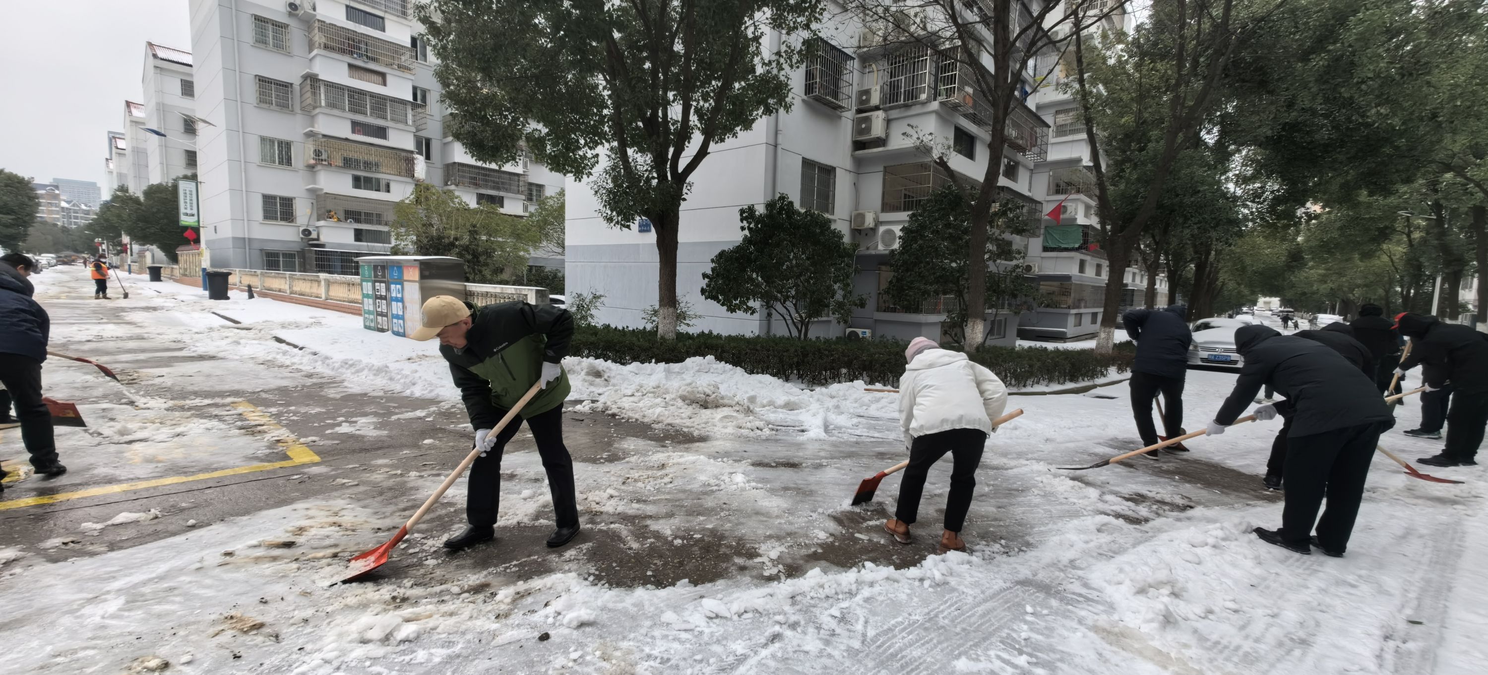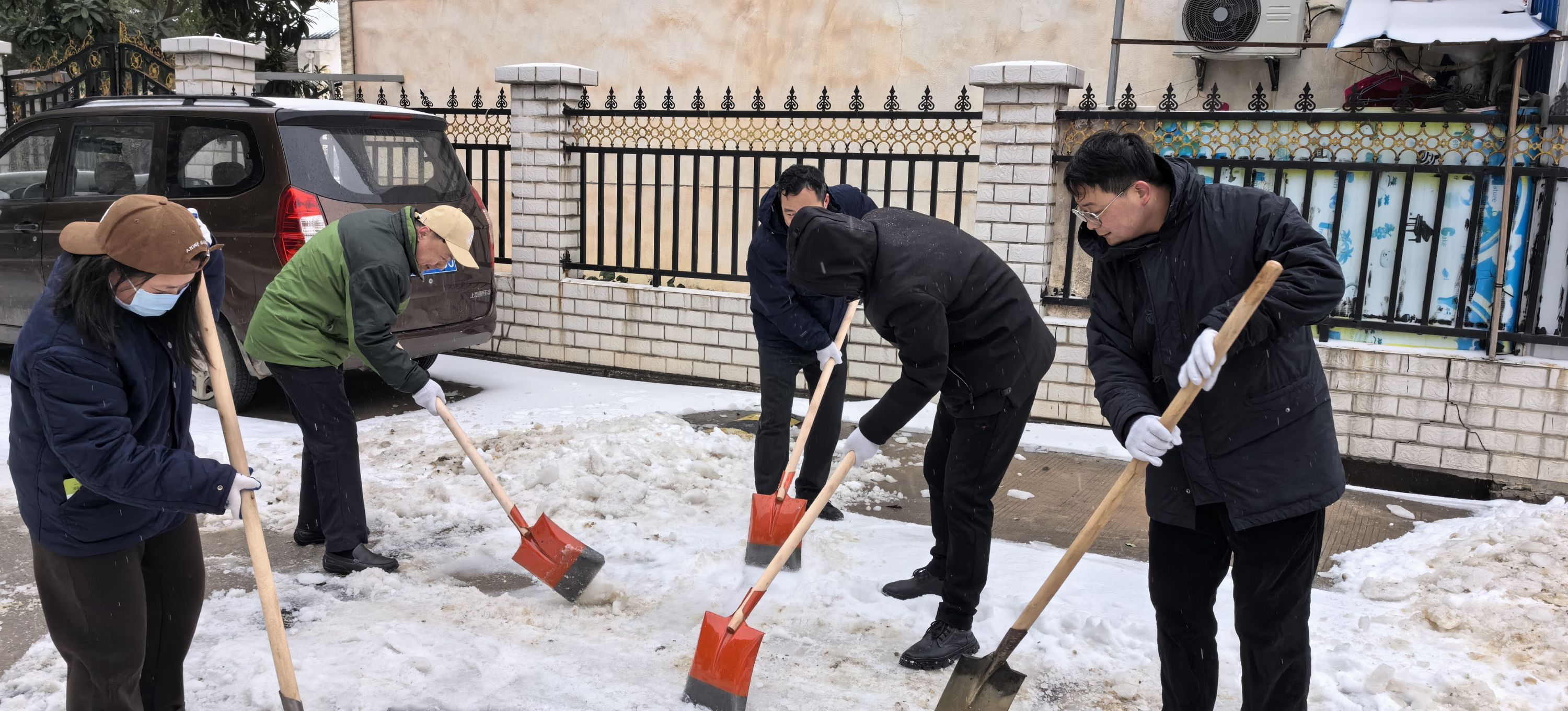 在新华小区居民出行必经路段,财政人员齐心协力,为居民铲出一条“平安路”。