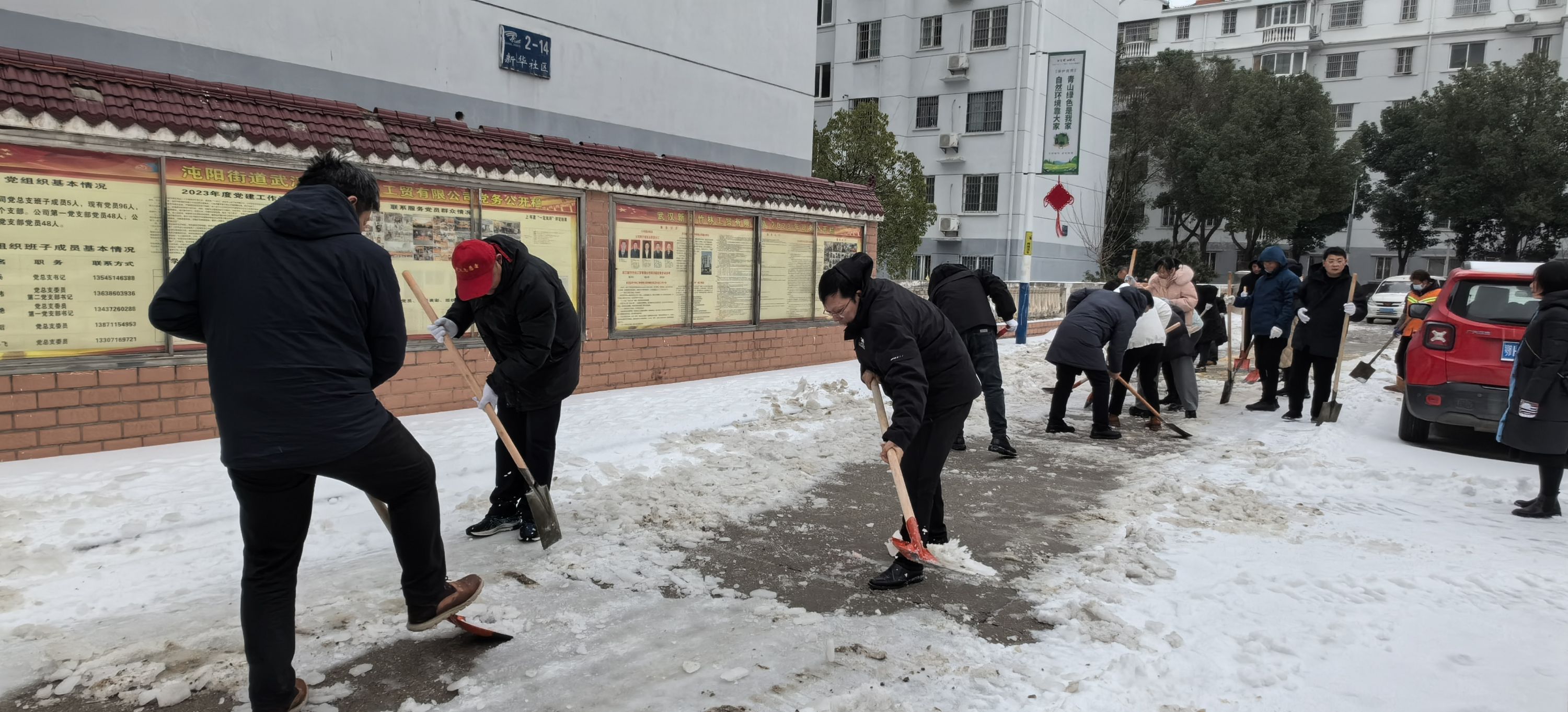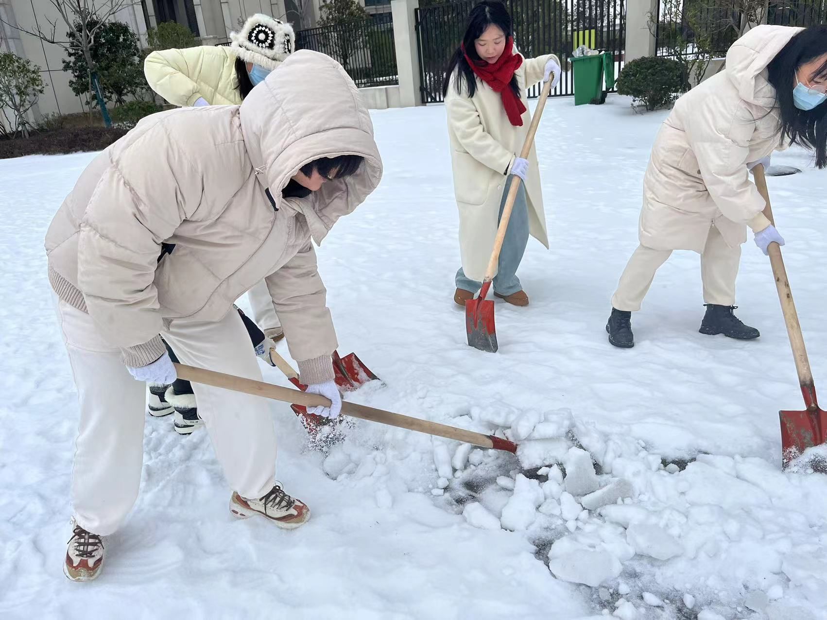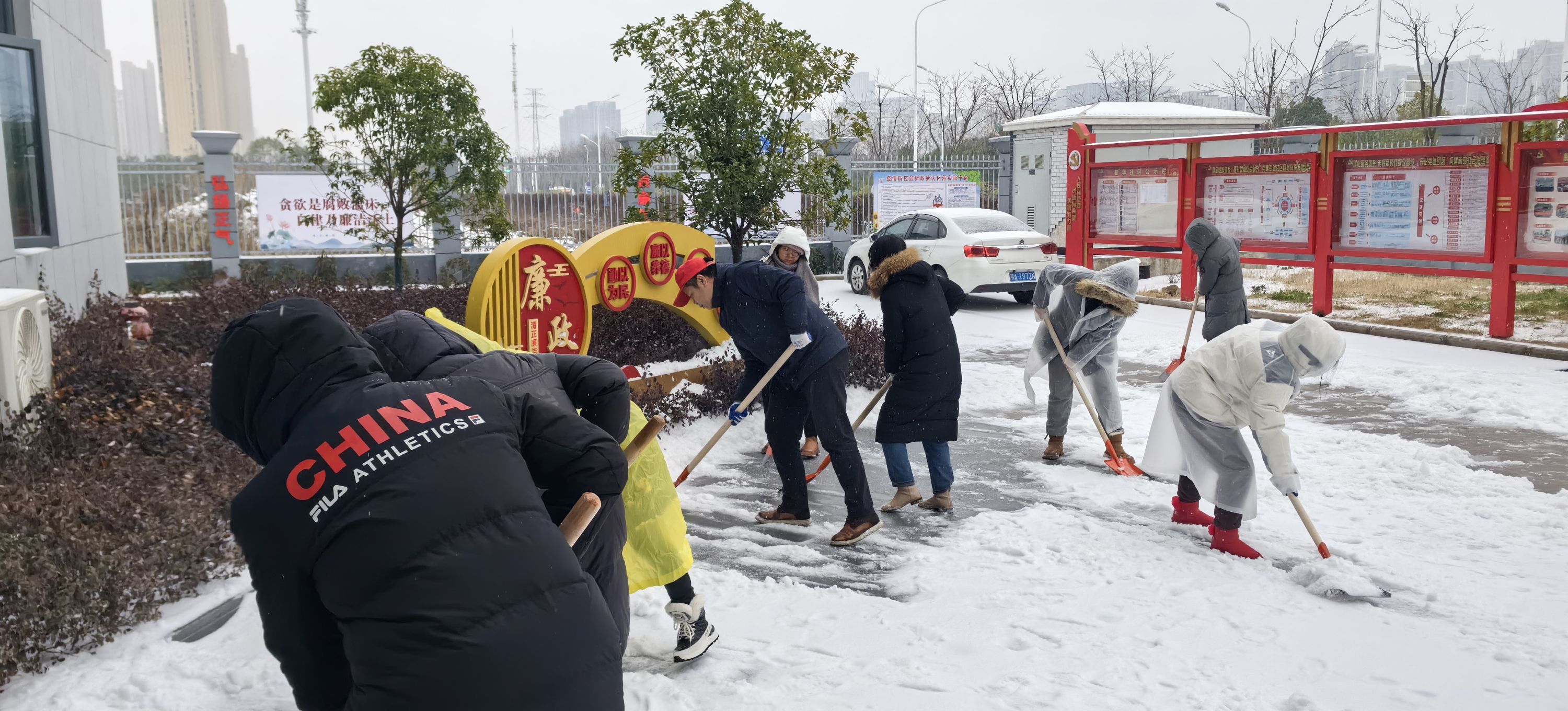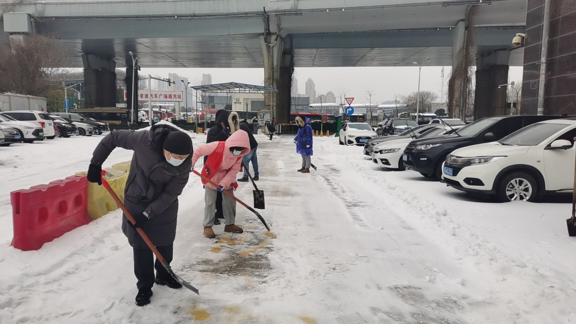 在地铁盛观尚城小区,财政青年奋力铲雪,他们的青春在风雪中闪光。