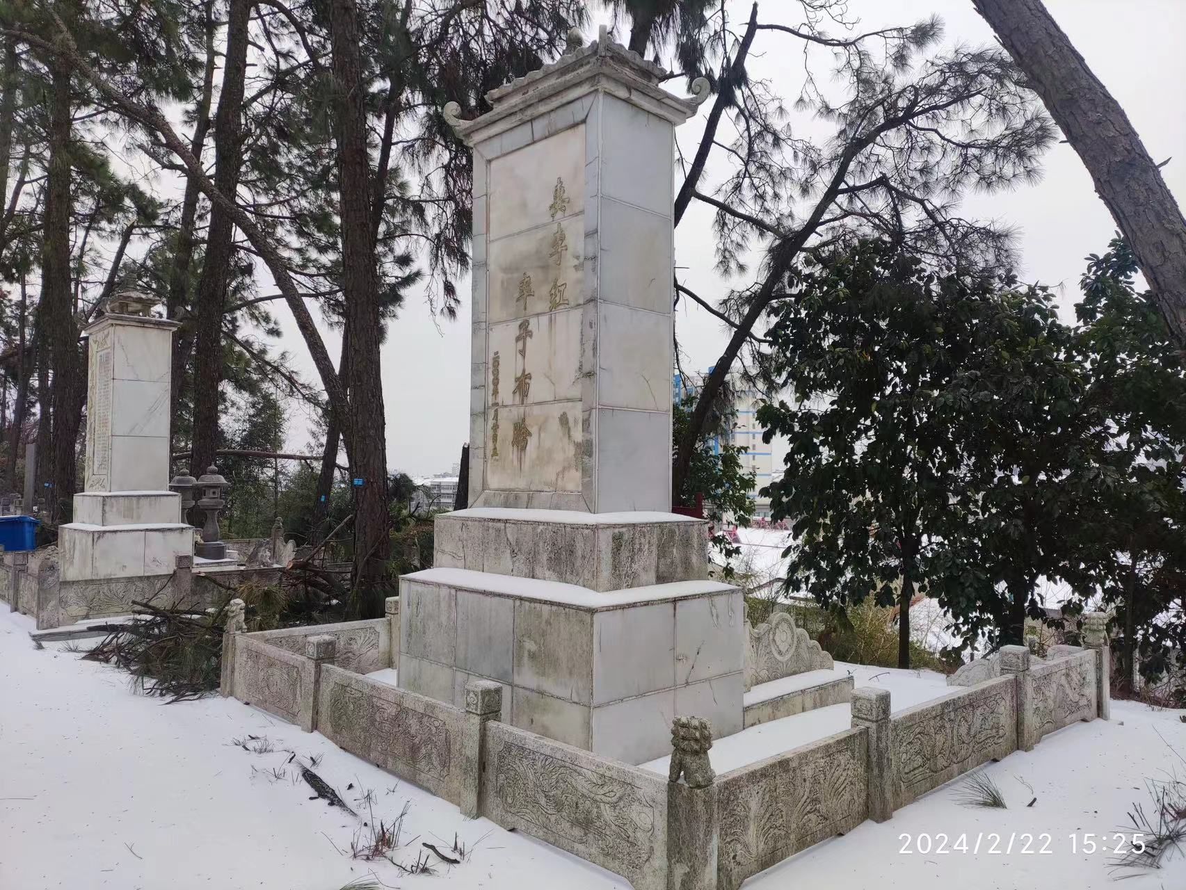 纱帽街道退役军人服务站仔细排查程家山烈士墓积雪情况,并及时对烈士墓周围的积雪和树枝进行清运,让烈士墓恢复往日庄严肃穆。