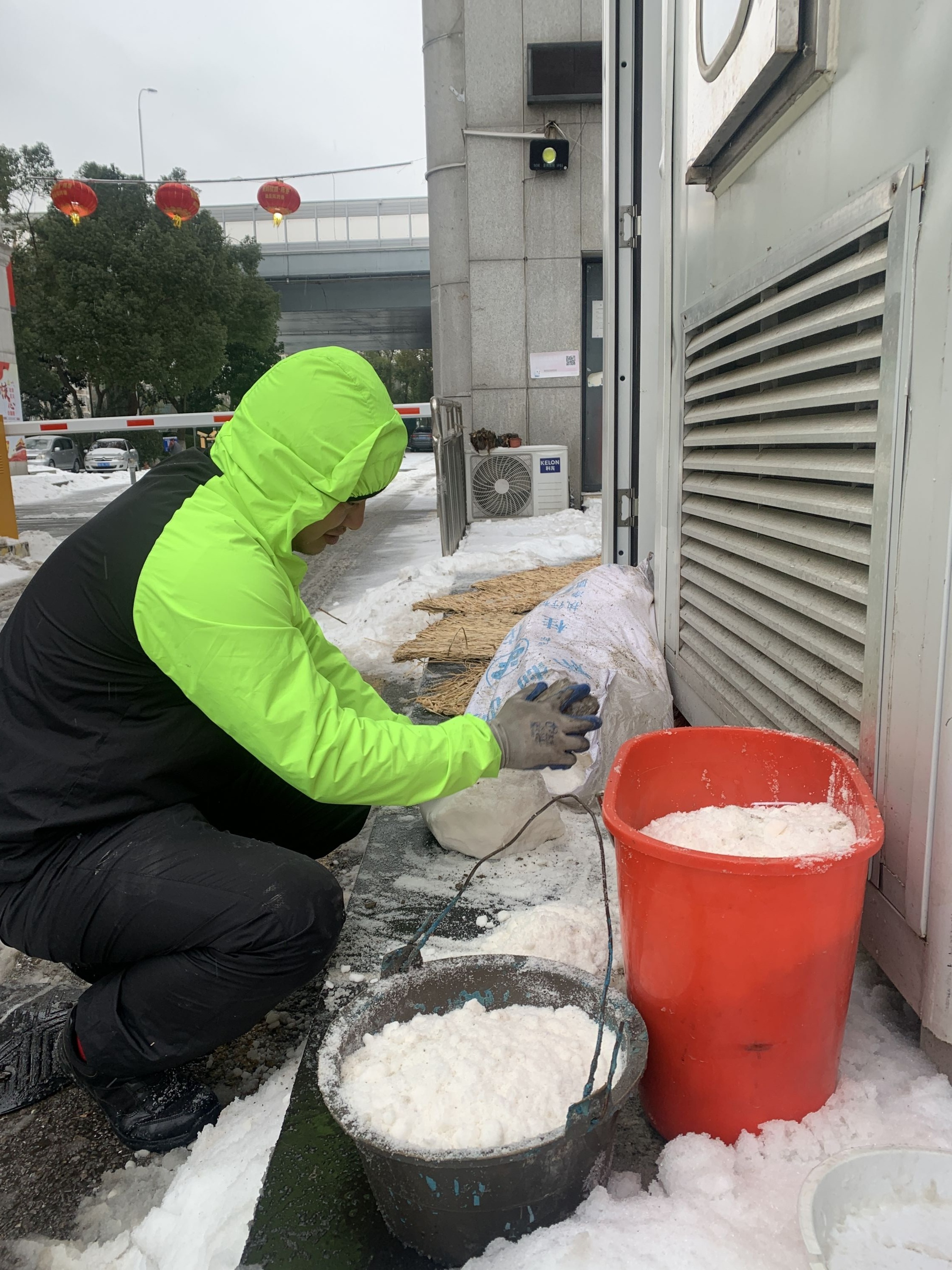 同时,物业工作人员在道路一旁将因为天气潮湿结块的融雪剂纷纷打散。“我们撒布融雪剂,是为了让融雪剂始终成为路面的‘最底层’,防止积雪成冰,薄冰变坚冰,为机械铲车铲除积雪创造良好的条件。”物业工作人员解释道,小小的融雪剂功效不容小觑。