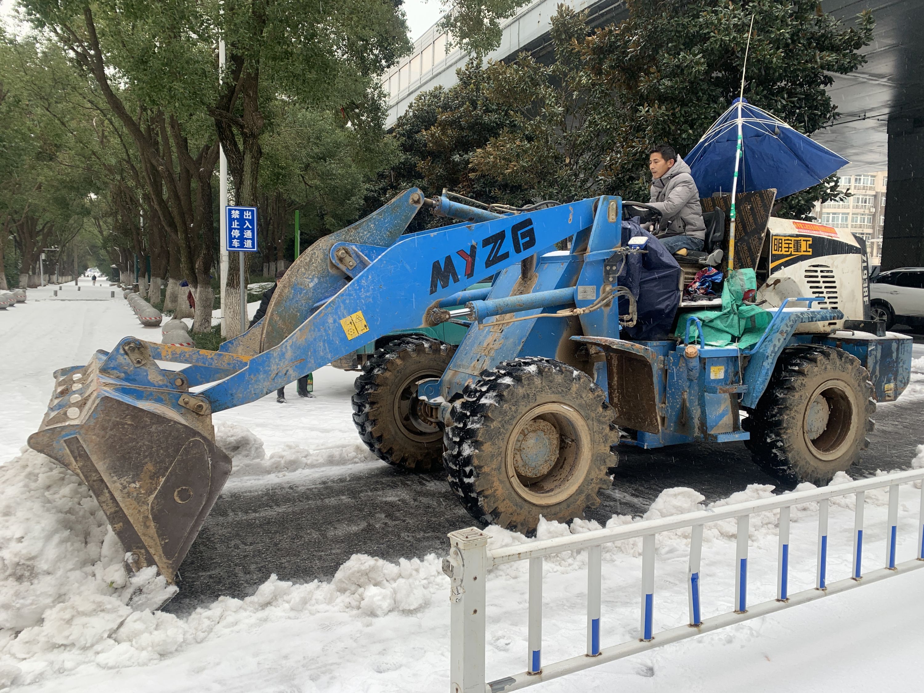 “转弯,来往前开,铲下来的雪往这边卡车运送!”一大早,社区工作人员冒着风雪协助铲车司机一同清理着冰冻结冰难以清理的路面。铲车在辖区作业,路过的居民纷纷点赞,在这样的冰冻极端天气居民们表示这样的除雪神器登场感觉安全感满满。
