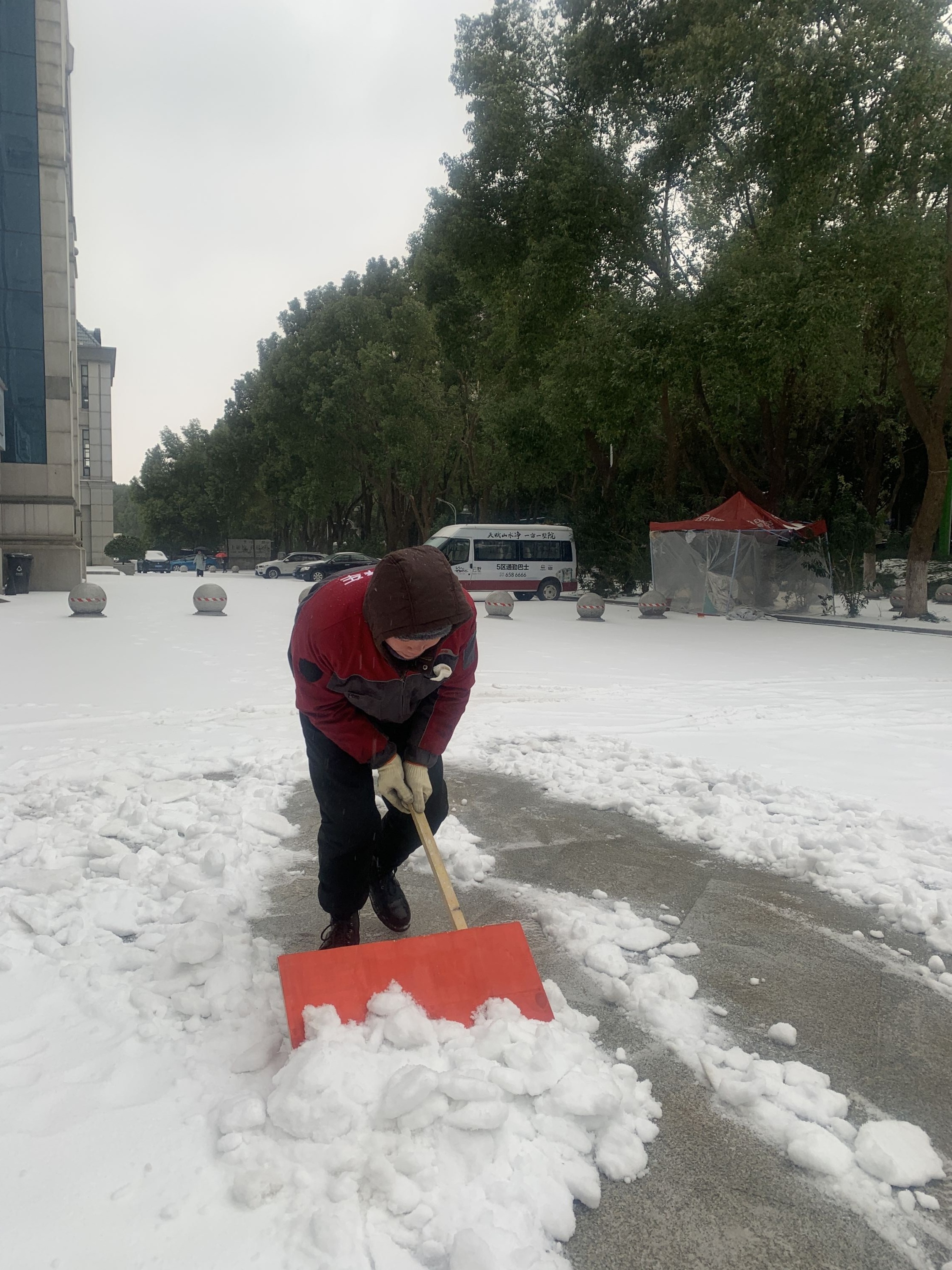 “这是我用木材自制的小雪铲,蛮好用的!”辖区商户工作人员自制除雪“神器”,积极清扫门前的积雪。