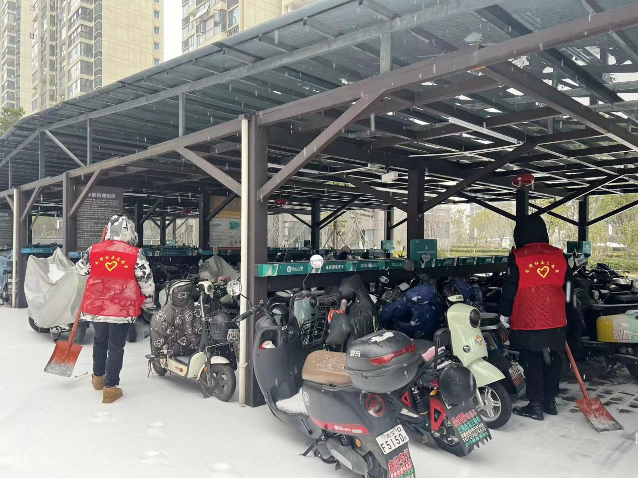 同时,社区负责人带队分别前往小区各处进行查看,对小区进出口、人行道、必经道路、单元楼栋出入口、电动停车棚出等查看地面易滑地段、冰锥坠落、棚顶积雪等安全隐患。