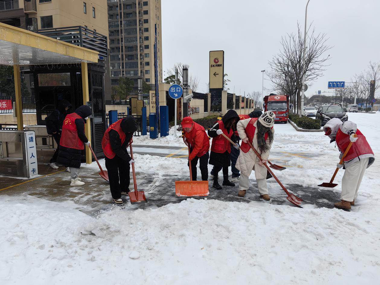 辖区党员志愿服务队充分发挥党员先锋模范带头作用,自发组织在小区进行除冰工作。当天清晨4点多钟,小组群里就活跃了起来,退休党员汪国生在群里号召动员大家开展铲雪除冰活动,通知一发出,小区党员、志愿者、居民等纷纷响应,争先恐后报名。社区的党员志愿者们分工明确、配合默契,深入小区出入口的主要道路,清扫出了一条条“便民路”,为群众出行安全“保驾护航”。