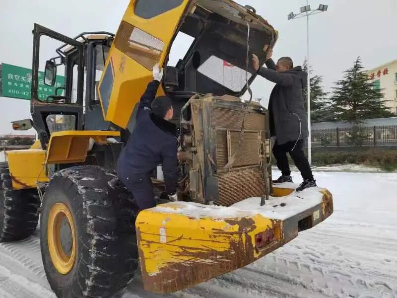 辅警张家贝在了解车辆故障后,凭借在部队练就的过硬修理技术,判断故障可能因滤油器结冰空气进入导致,于是找来修理工具卸掉了滤油器进出口阀门排气排冰,在暴雪低温天气,徒手奋战近1小时,最终铲雪车发动机重启成功。