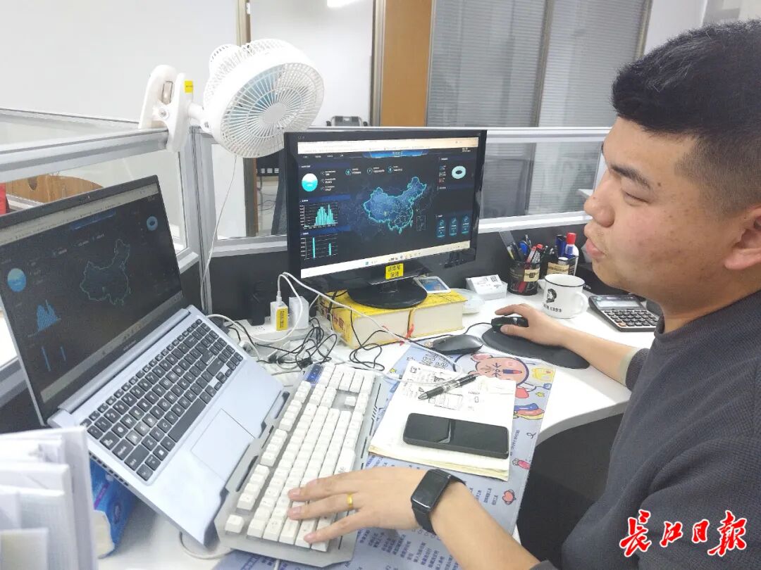 ▲开发运维部技术人员吴浩在监测智能光伏系统运行数据。