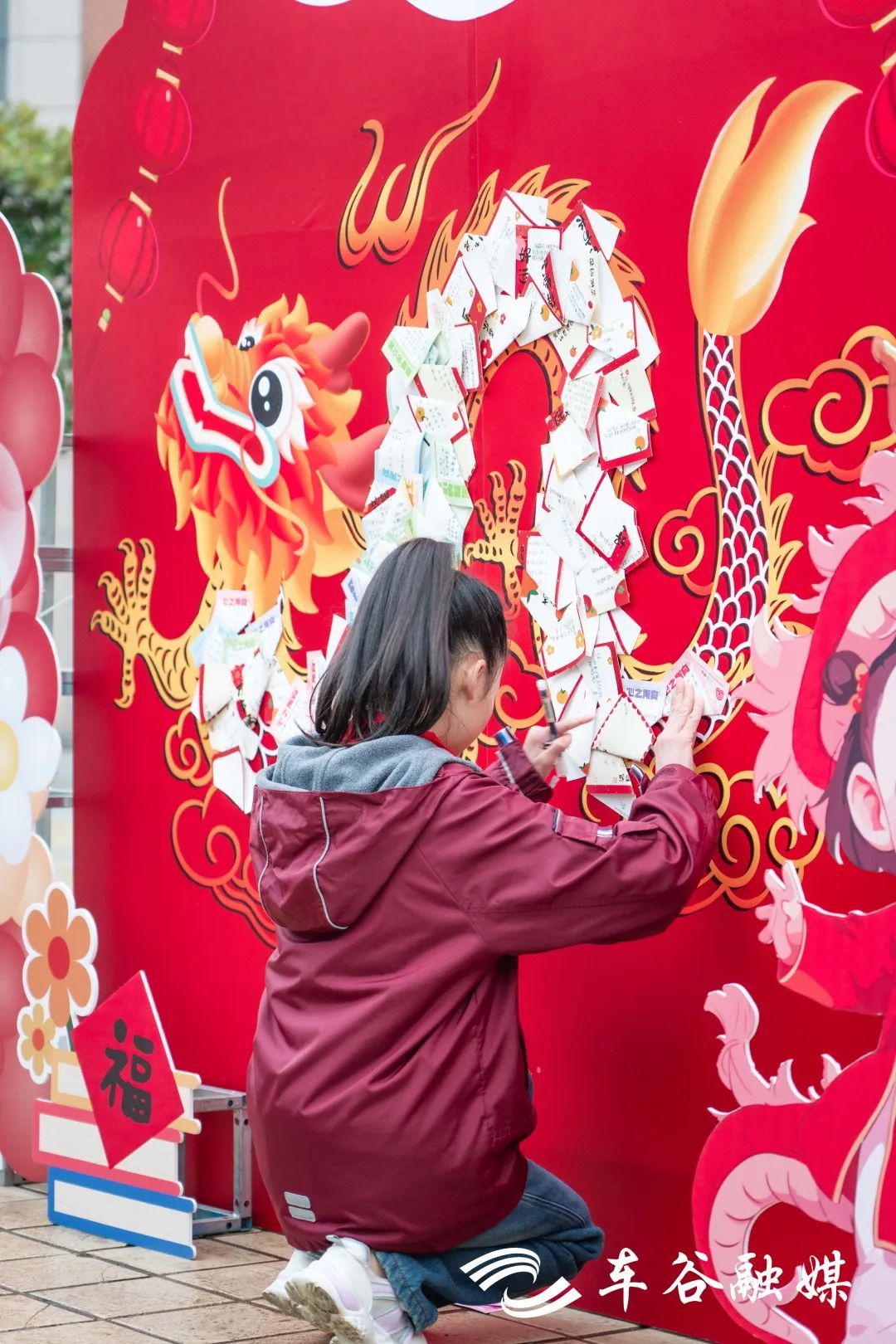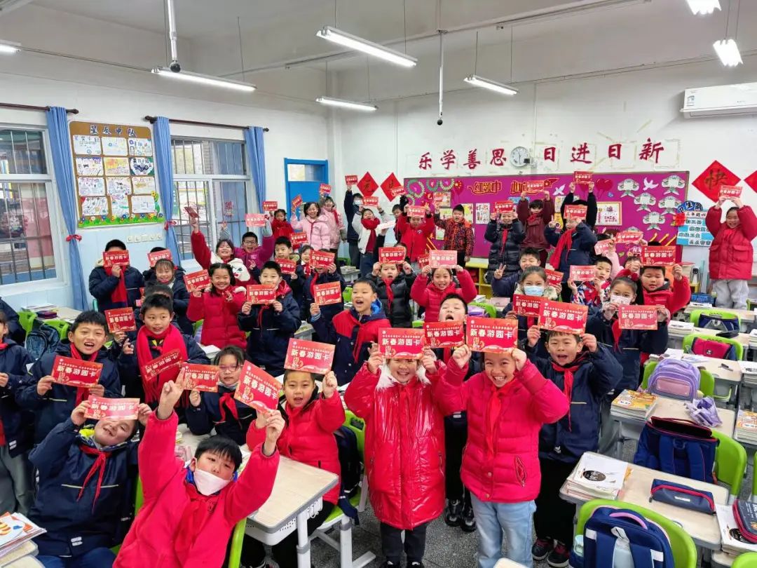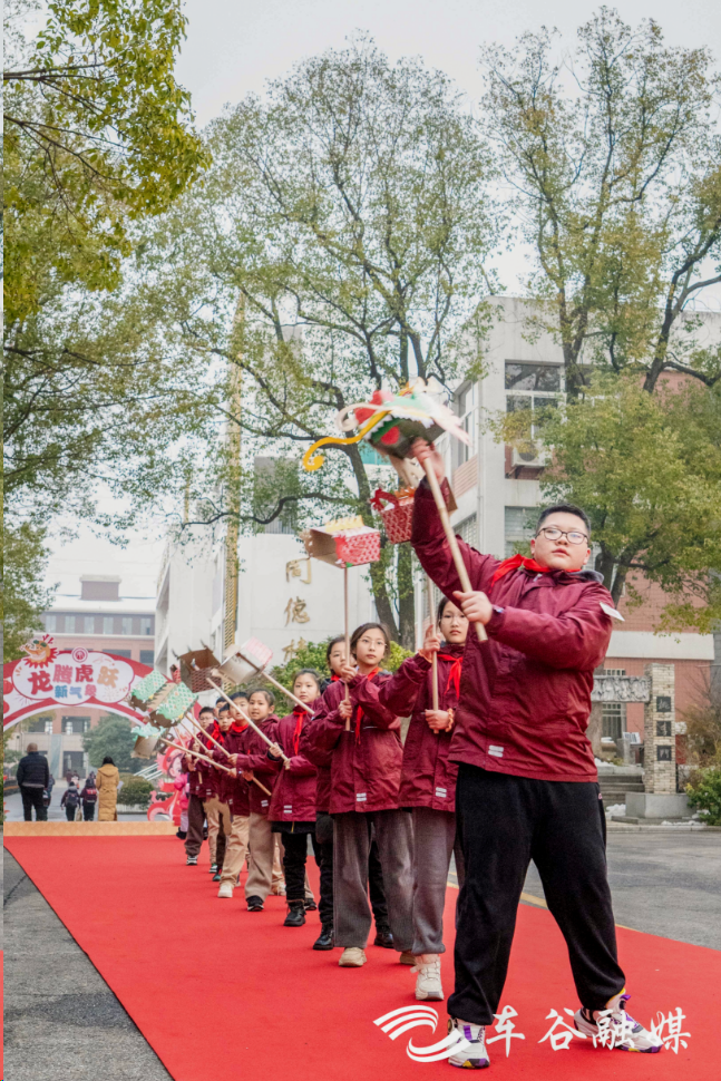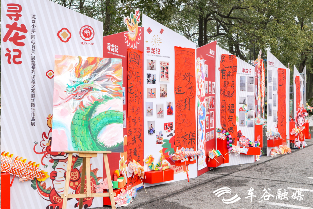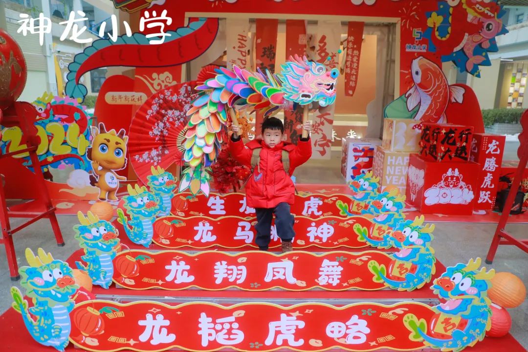 校园内,沌口小学还设置了集中展示寒假手工作业的《寻龙记》作业墙、“龙鳞许愿墙”、龙门等,学生们贴新年心愿、展示寒假作业,集体跨过“龙门”,仪式感直接拉满。