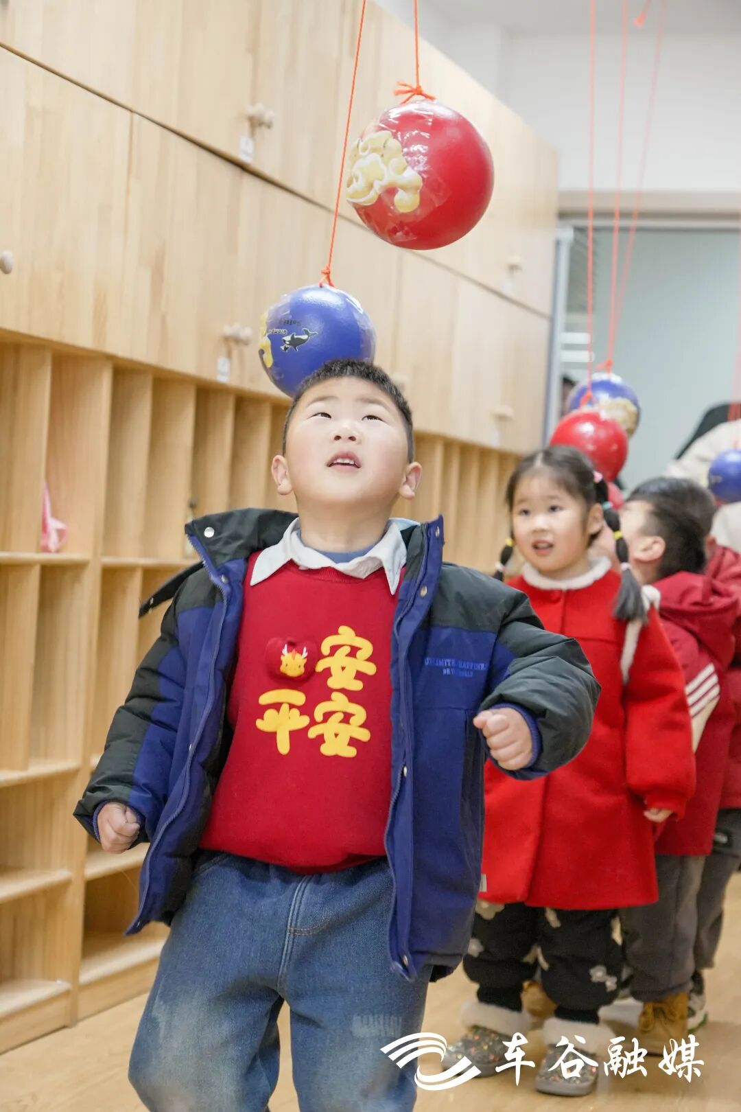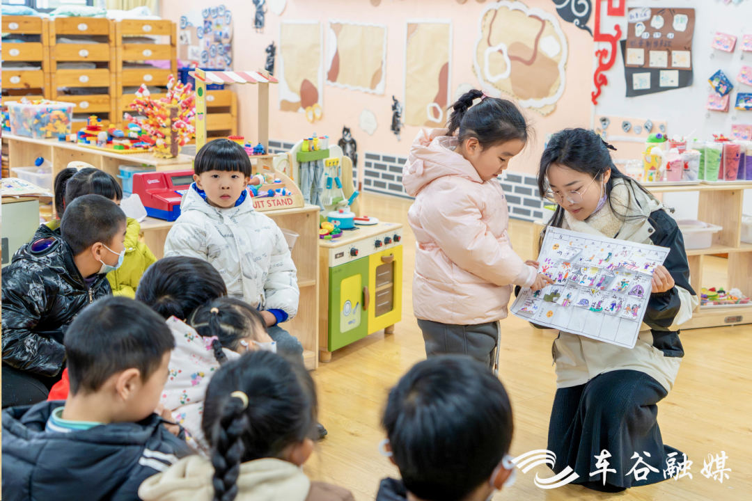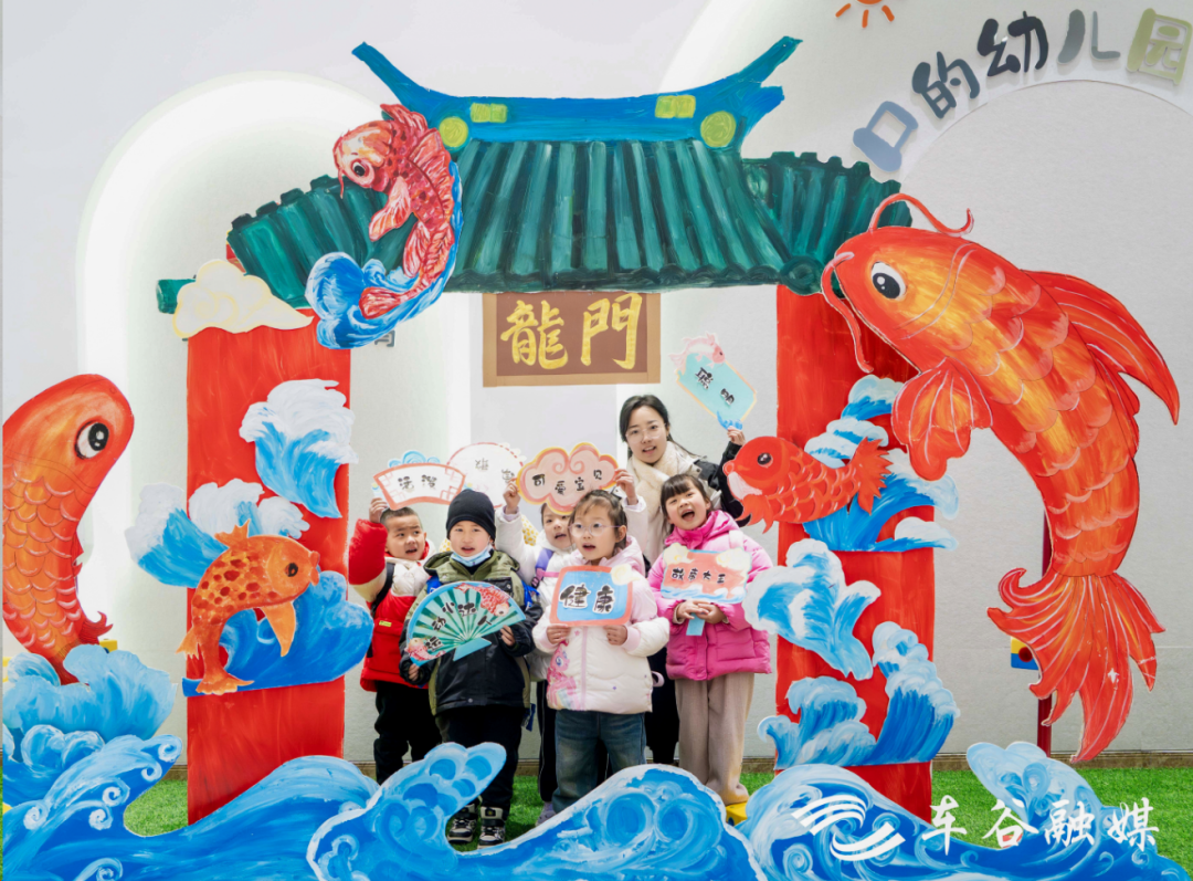 走进幼儿园,“小鲤鱼跳龙门”主题文化墙成了孩子们的“打卡地”,小朋友们举着聪明、勇敢、活泼、可爱等手牌与老师合影;教室内,小(一)班、小(四)班的小朋友做起了“鲤鱼跳龙门”“小鲤鱼翻跟头”的游戏,中(一)班的小朋友通过绘本分享假期生活、分享新年目标……现场到处都是孩子们银铃般的笑声。