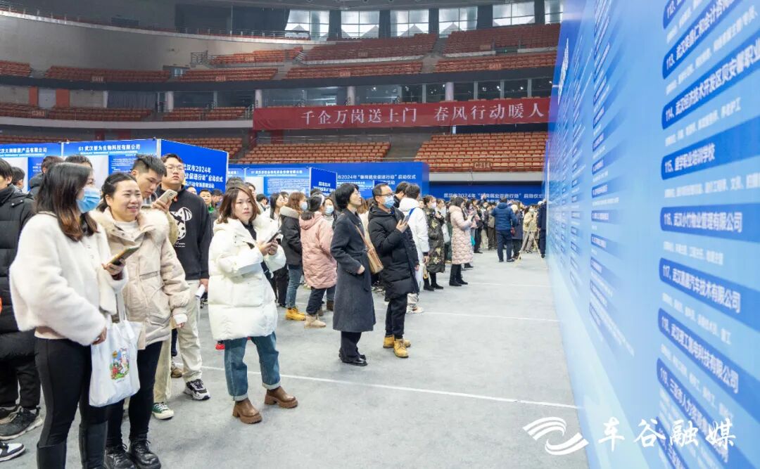 车谷融媒2月27日讯 2月27日,武汉市2024年“稳岗就业促进行动”在武汉经开区启动。当天,“春风行动”专场招聘活动在武汉体育中心体育馆举行,120家知名企业聚集武汉经开区,1万多个优质岗位线上线下同步招聘,3249人达成初步就业意向,其中1873人被现场录用。