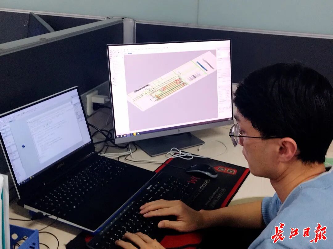 ▲技术人员正在编写代码,运行车间产线的三维仿真模型。长江日报记者王双双 摄