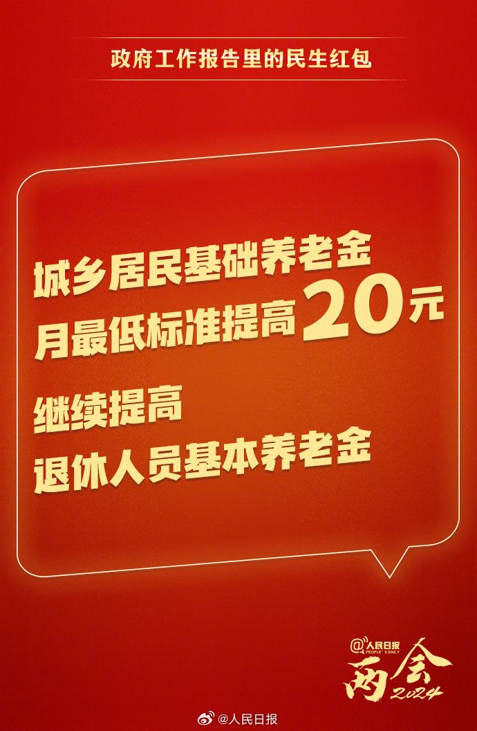 实施积极应对人口老龄化国家战略,城乡居民基础养老金月最低标准提高20元