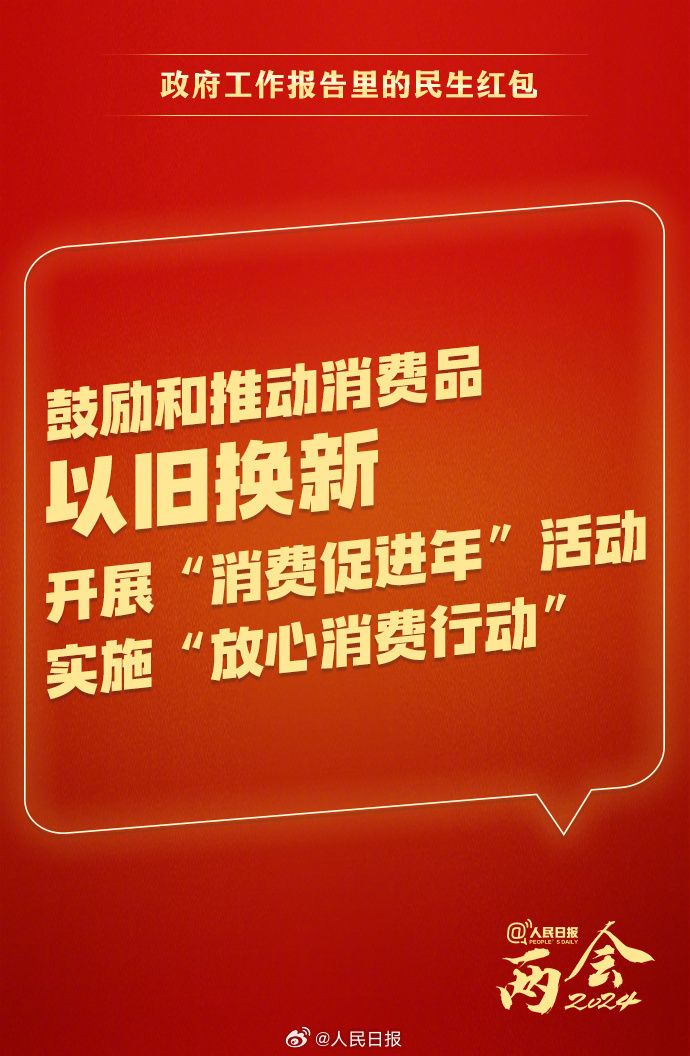政府工作报告里的惠民政策都有哪些?鼓励和推动消费品以旧换新,加强无障碍适老化设施建设,更多戳图了解!