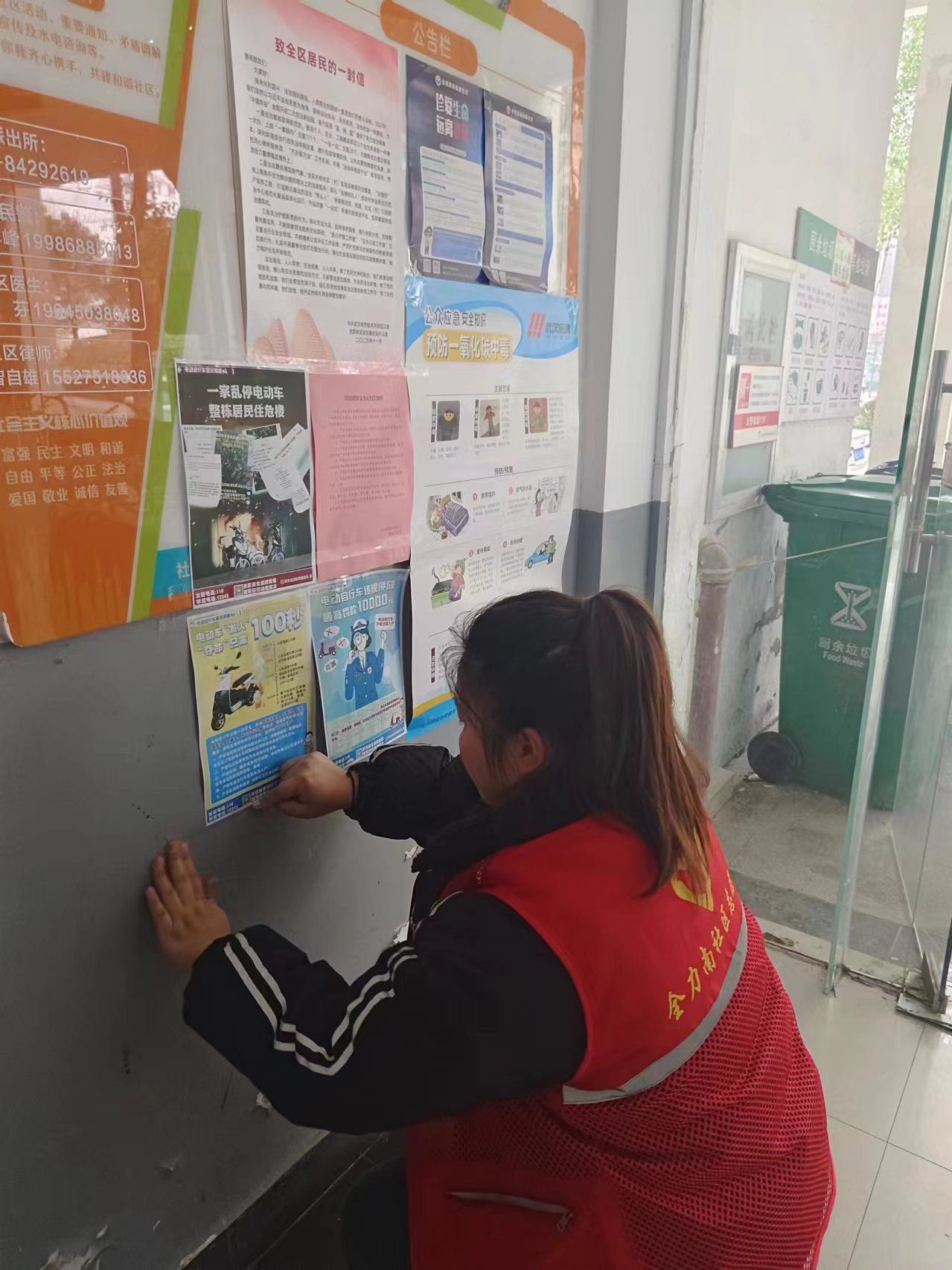 在排查中,社区重点针对楼栋公共区域、商铺、车棚等处进行检查,对小区的电动车违规停放及违规“飞线”充电、堵塞消防通道、安全出口等隐患问题开展集中整治。针对检查中发现的问题,社区通过张贴电动车停放温馨提示或电话沟通,告知车主违规充电行为存在的安全隐患和潜在危险,引导居民严格遵守充电规范。
