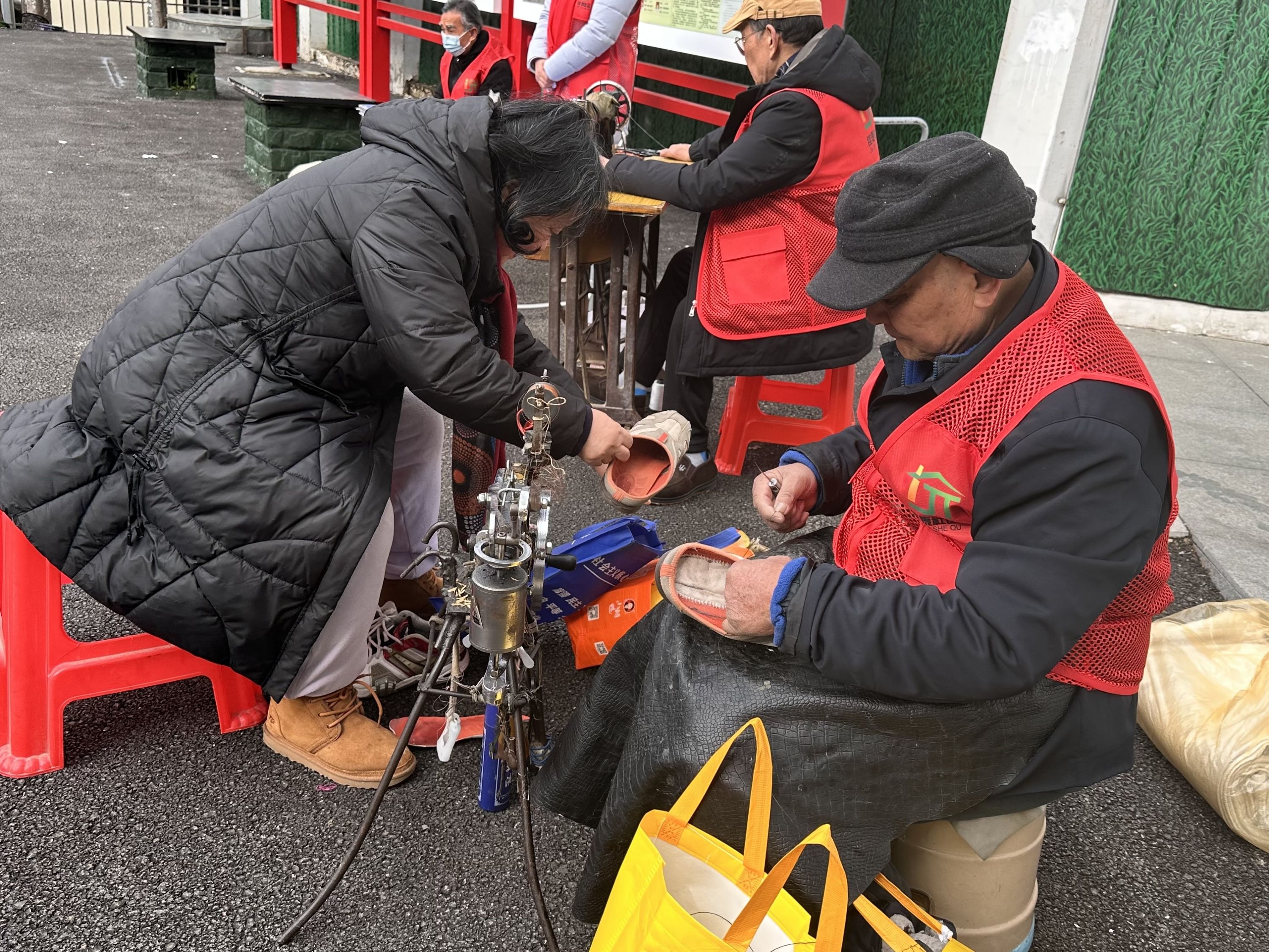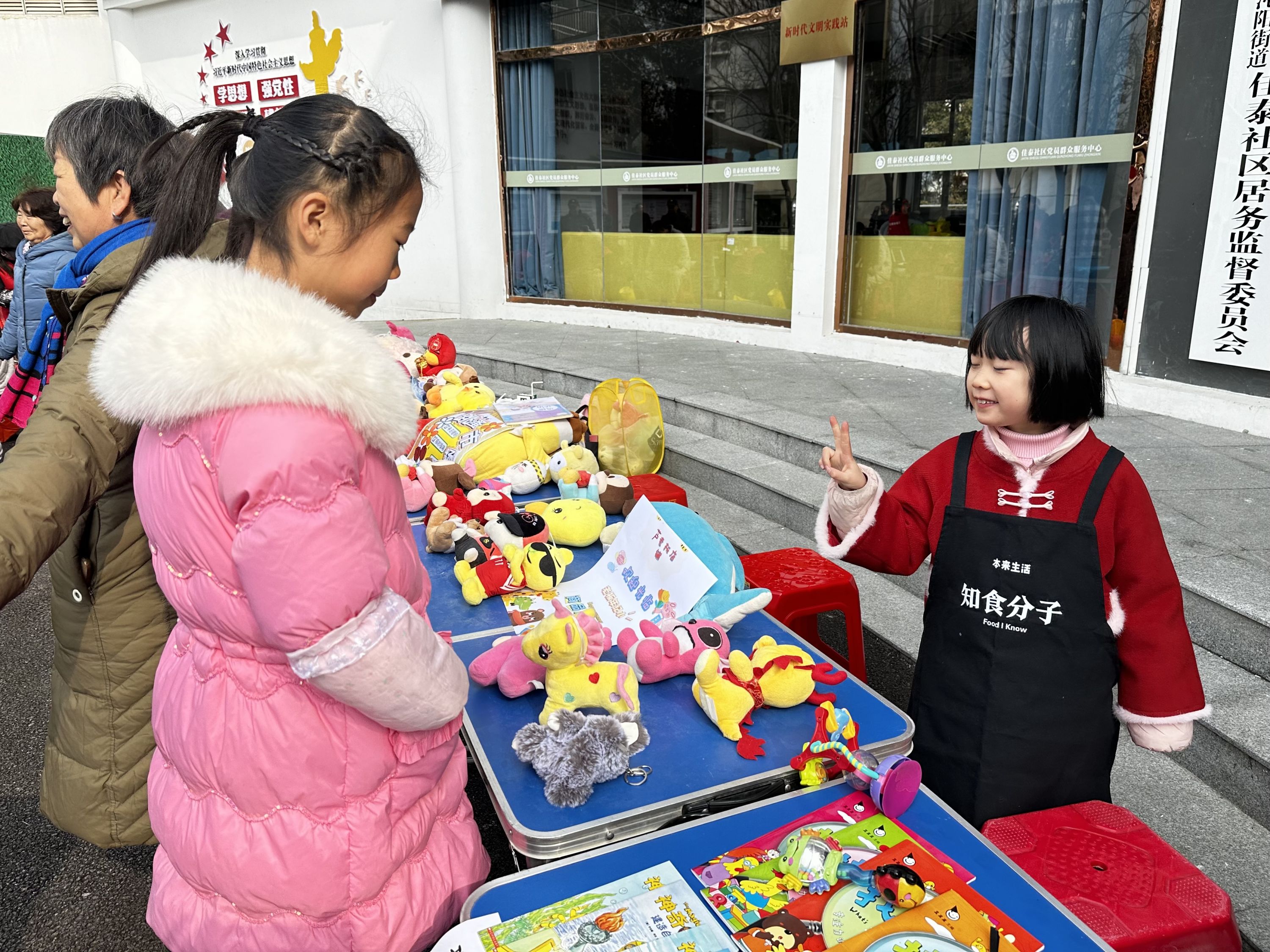 随后,小朋友们拿出物品、小板凳、自绘摊位海报等,将提前准备好的手工作品进行公益置换。通过这项公益活动来学习雷锋同志艰苦朴素、勤俭节约的宝贵精神。同时,便民志愿服务队为居民提供免费磨刀、修鞋、理发等服务。