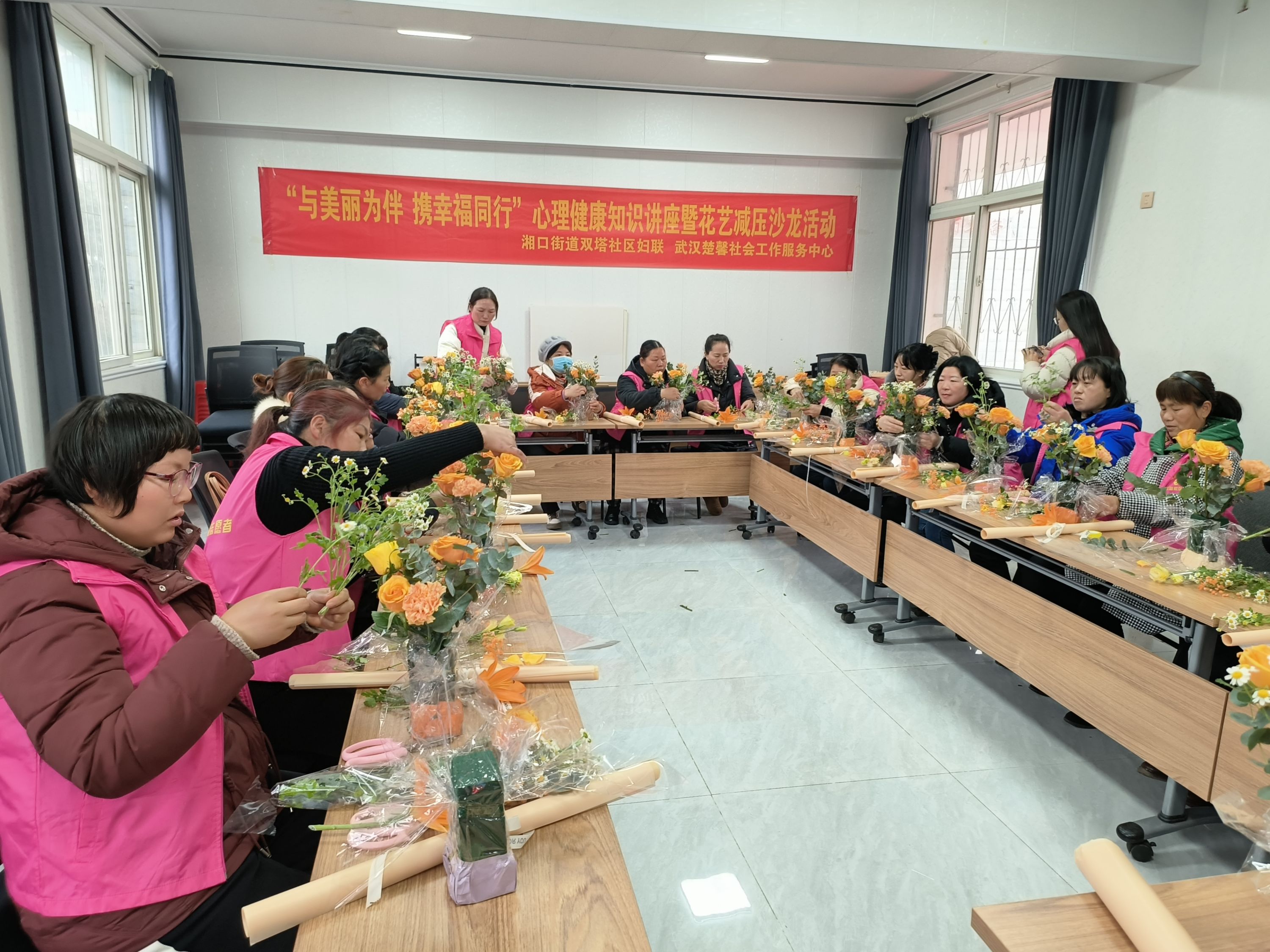 3月5日,双塔社区妇联开展“与美丽为伴,携幸福同行”心理健康知识讲座暨花艺减压沙龙主题活动。