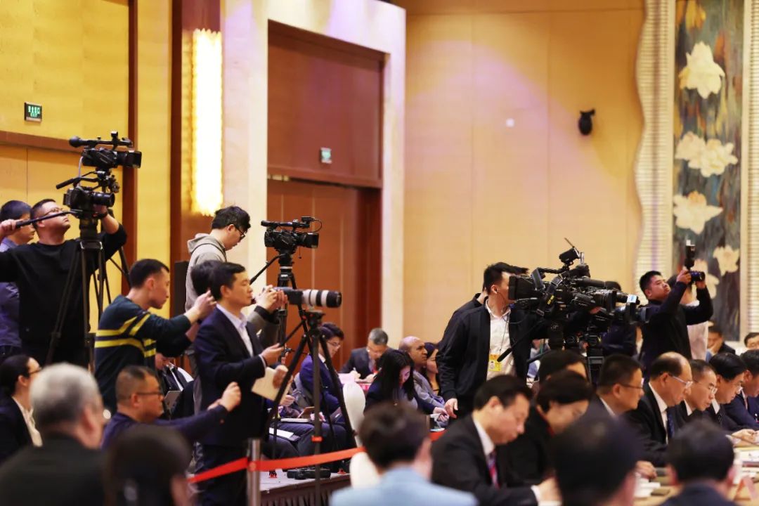 媒体聚焦湖北代表团开放团组会议。(湖北日报全媒记者 陈迹 摄)