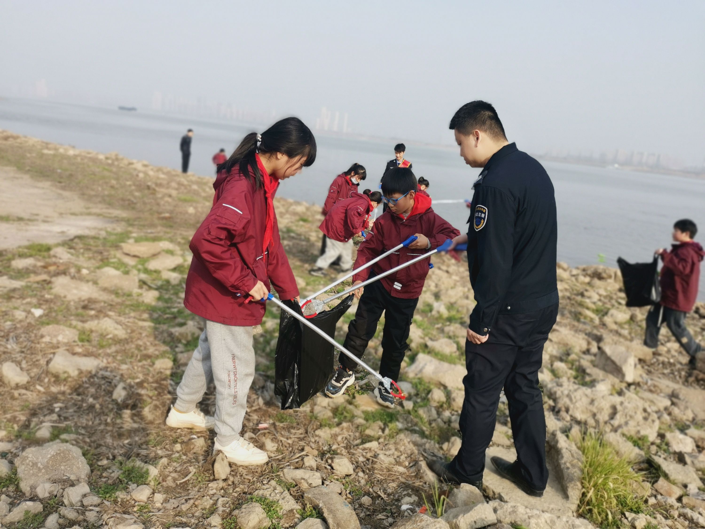 车谷融媒3月8日讯 3月7日,沌口街道联合长江航运公安局武汉分局汉阳派出所、武汉沌口海事处、沌口小学及相关部门在长江边开展“复苏河湖生态环境,助力无废城市建设”主题活动。