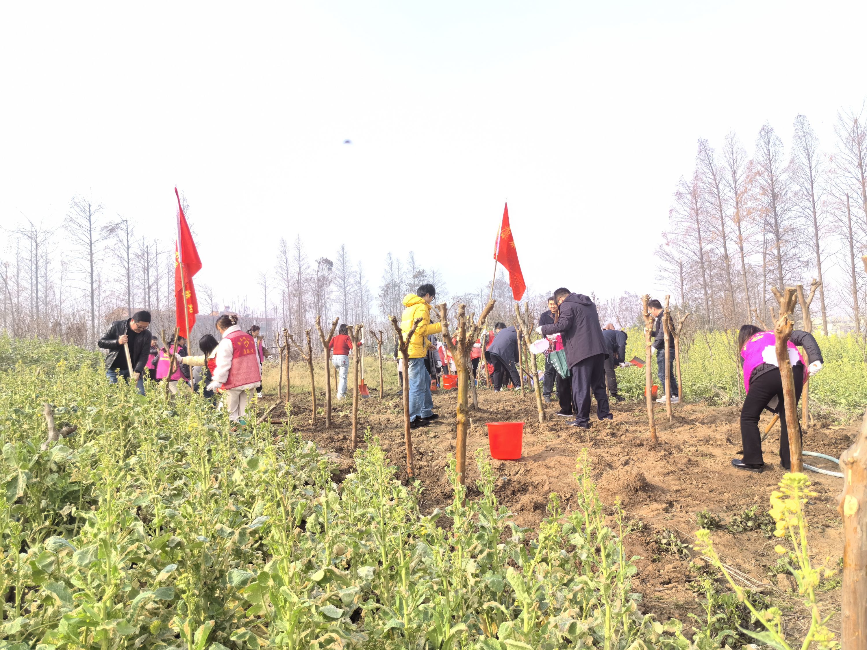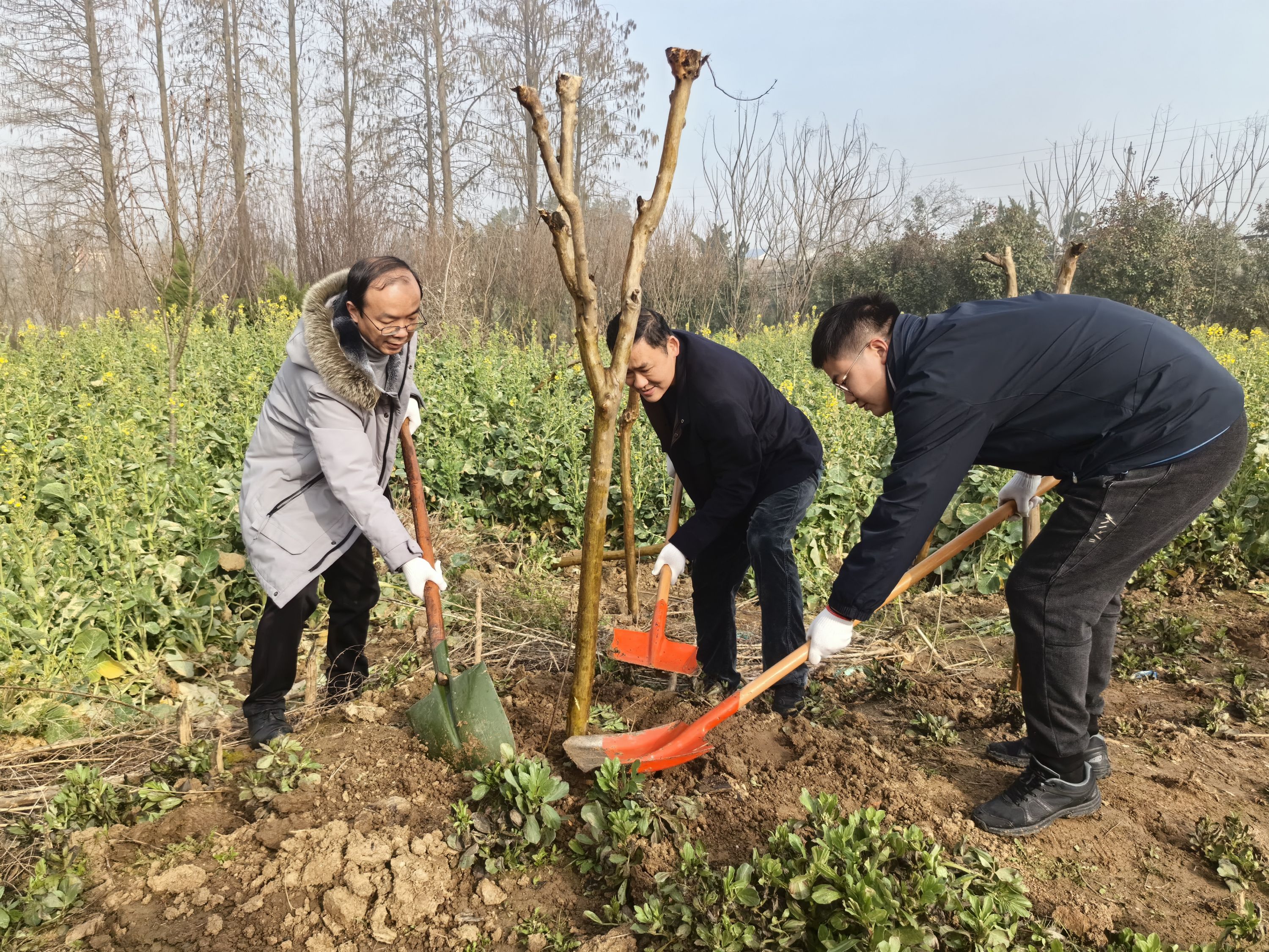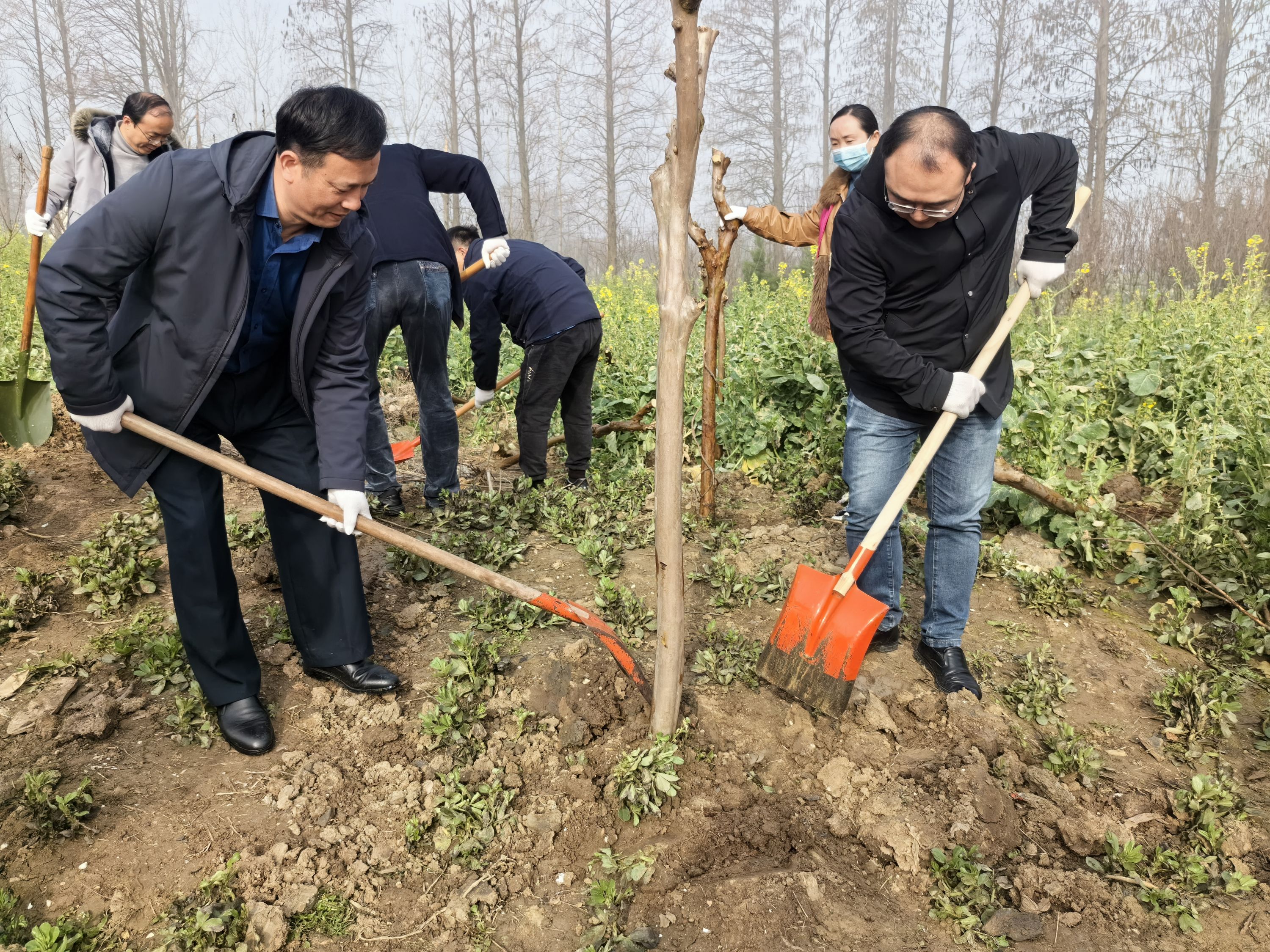 春风徐徐,阳光和煦。活动现场,大家分工合作、默契配合,或两人一组、或三人一队,挥锹挖坑、扶树正苗、培土围堰、浇水定根,有条不紊地认真完成每一道工序,力争做到“植一棵,活一棵”。现场一片热火朝天、干劲十足的景象。