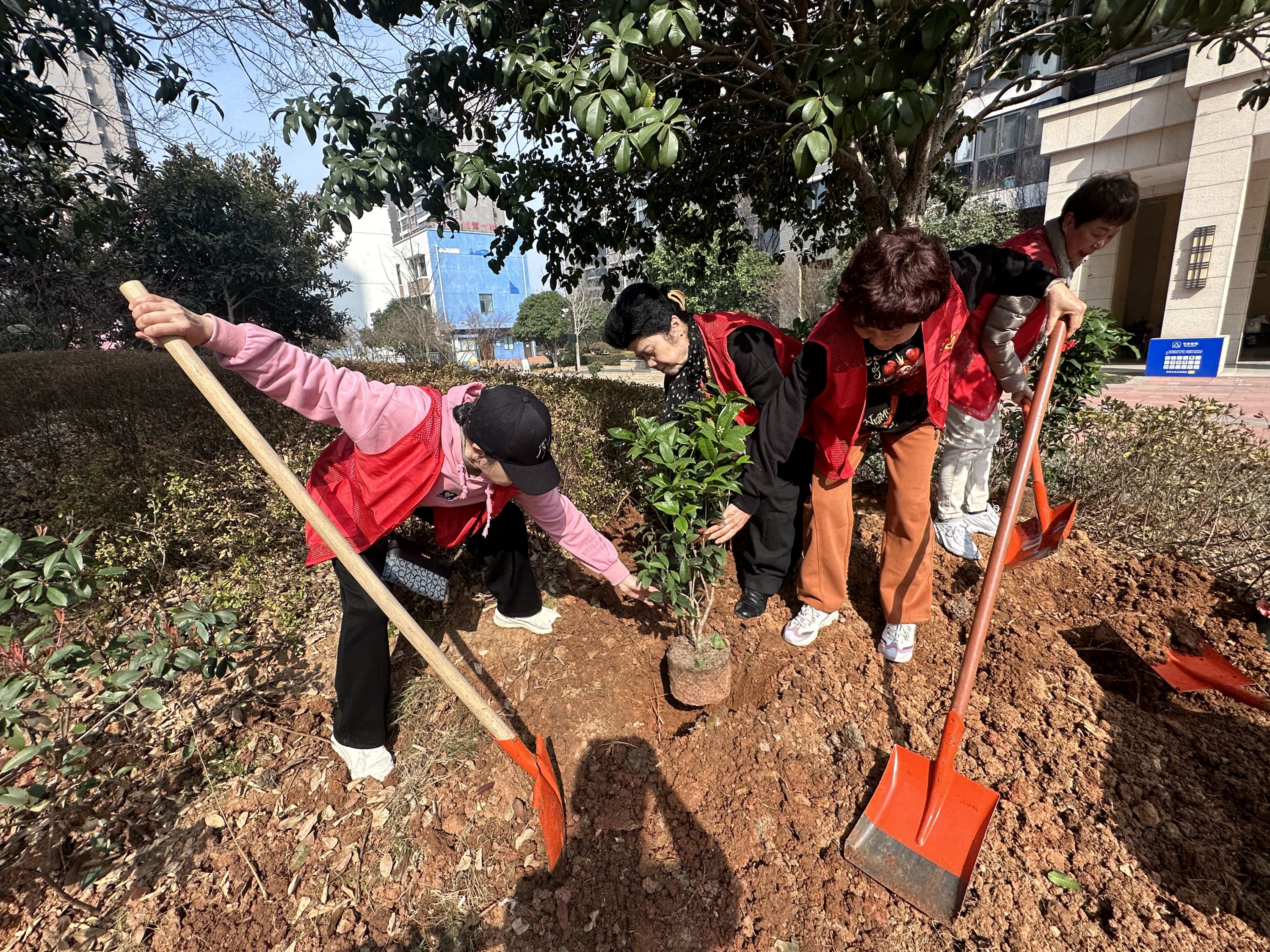 活动伊始,志愿者与小朋友们齐聚一堂,交流着对植树节的认识和期待。随后,在志愿者的带领下,小朋友们拿起小铲子、水壶等工具,纷纷投入到植树造绿的行列中。他们或挖坑或浇水施肥,每一个动作都显得那么认真而专注。志愿者们则用自己的经验和智慧,指导孩子们如何更好地种树护绿,用大手轻轻地为小树苗培土,共同守护着它们的成长,为社区的绿化事业贡献力量。