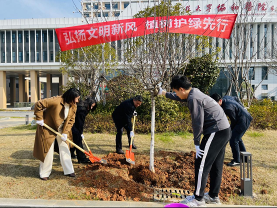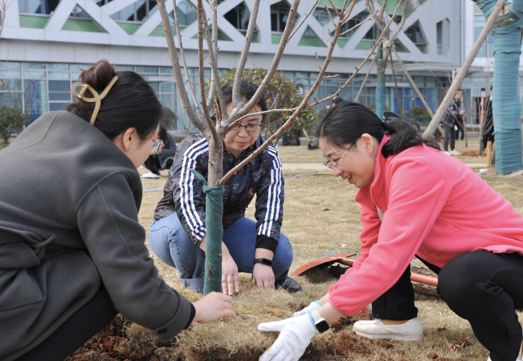 当天,协和医院车谷院区党委20余名党员干部、青年职工共同来到院区南广场,参加植树护绿活动,大家挖树坑、扶树苗,培土、浇水,通过党员干部和青年职工们的共同努力,一棵棵枝头吐绿的小树苗迎风而立,向阳而生。
