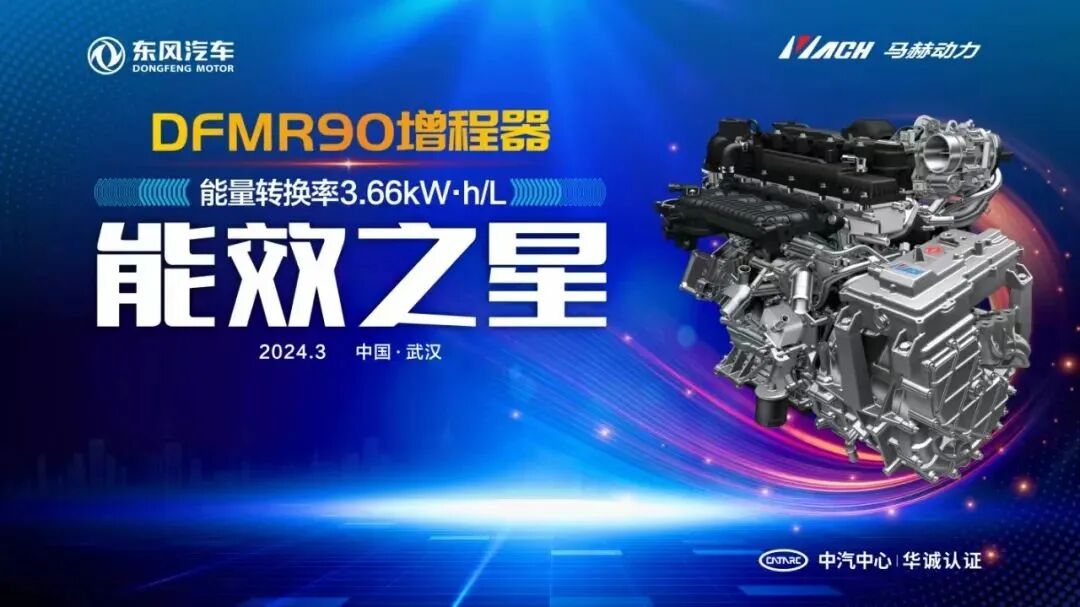 其中,DFMR90增程器是行业第一款能量转化率通过权威认证的增程器,也是当前量产能量转化率最高的增程器,后续将在东风全新车型上搭载亮相。