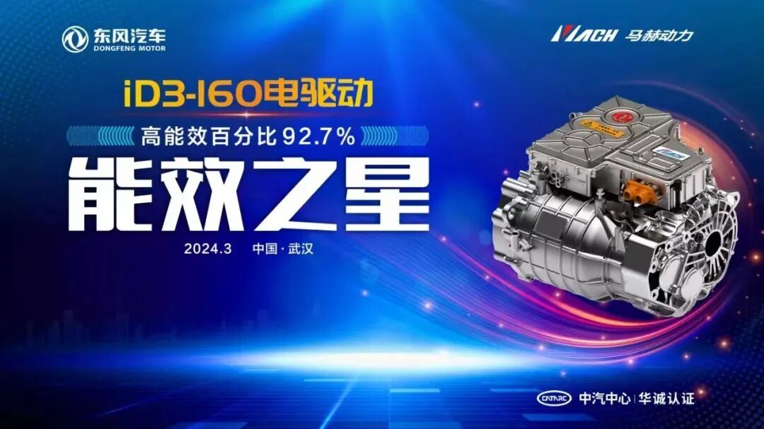 iD3-160高效电驱动总成是东风公司马赫E动力品牌的旗舰机型,高能效百分比达92.7%,是行业首款认证高能效面积占比超过92%的电驱动总成,集成20余项行业领先技术,将搭载应用于东风品牌多款车型,eπ007为首搭车型。