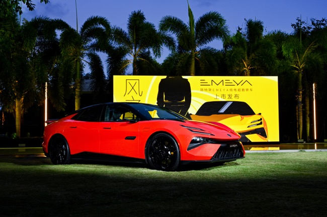 ▲路特斯上市首款纯电超跑轿车EMEYA繁花。