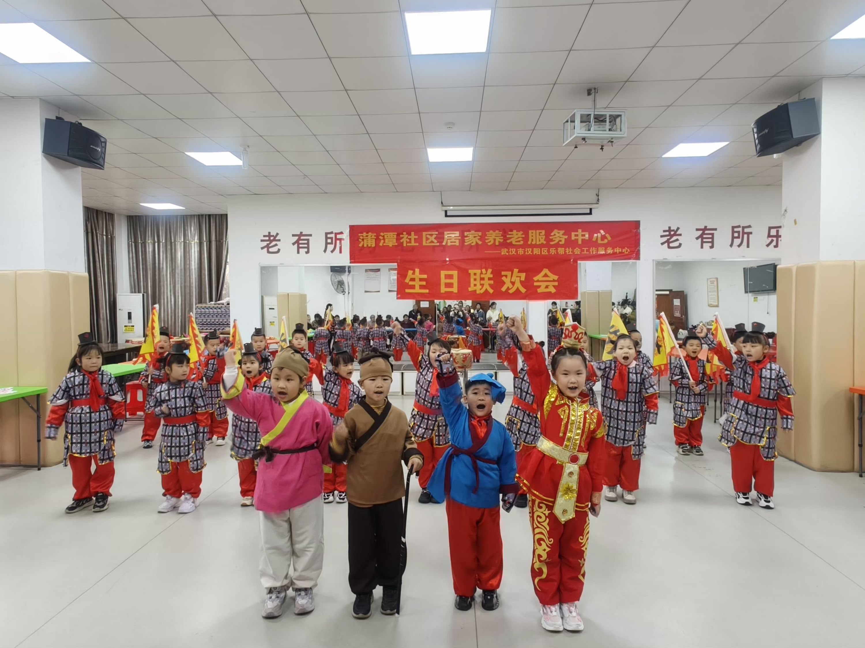 活动当天,居家养老中心工作人员提前布置好场地,为老人们准备了丰盛水果零食和精美生日蛋糕。活动在孩子们表演的《木兰从军》的舞台剧中拉开序幕,孩子们甜美的笑容、欢快的舞蹈给老人们送上纯真的生日祝福,赢得了老人们的阵阵掌声。