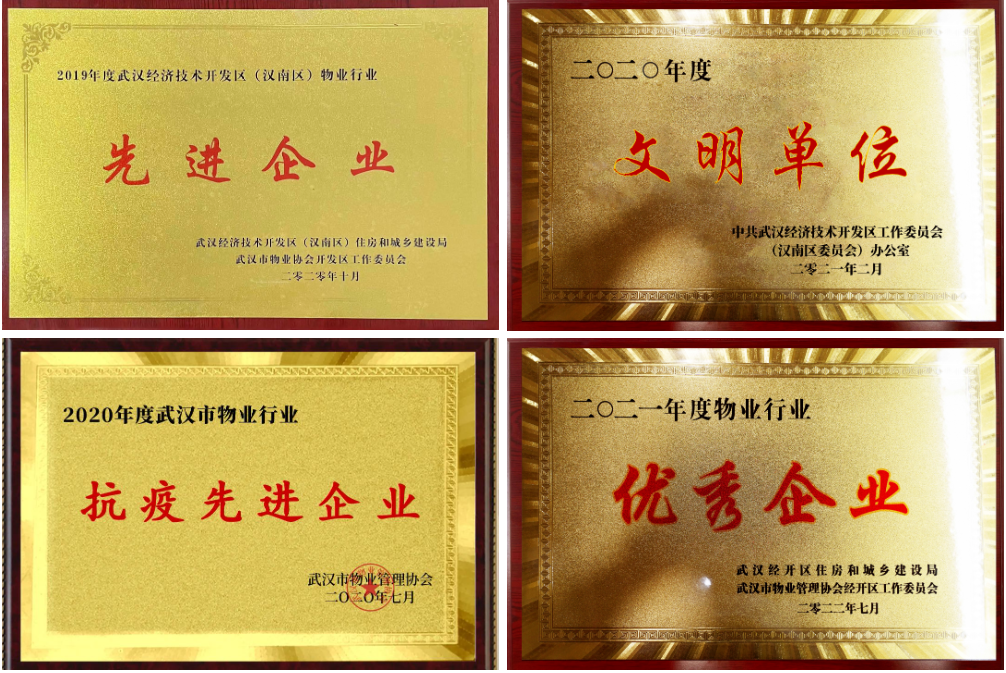 2019年以来,车都物业公司先后当选为武汉经开区物业协会理事单位、副会长单位、武汉市物业协会理事单位;荣获市“抗疫先进企业”、区“优秀企业”“文明单位”、“消防技能竞赛二等奖”等殊荣。