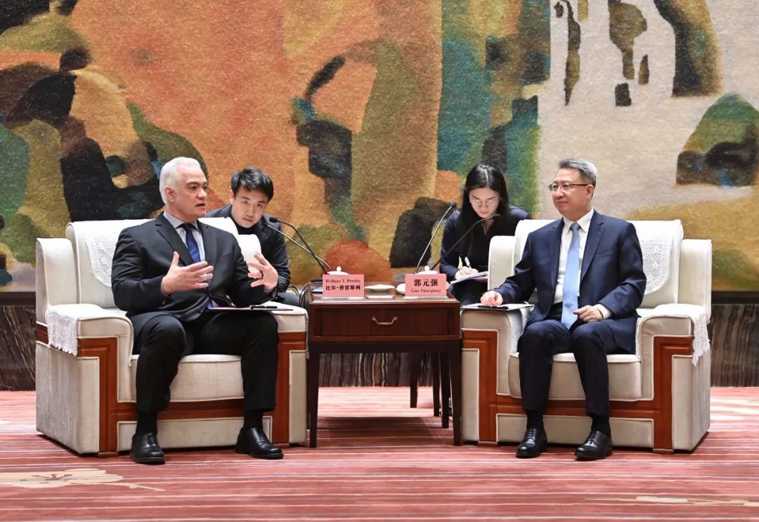3月20日,省委常委、市委书记郭元强会见安波福全球副主席兼首席运营官比尔·普雷斯利一行。