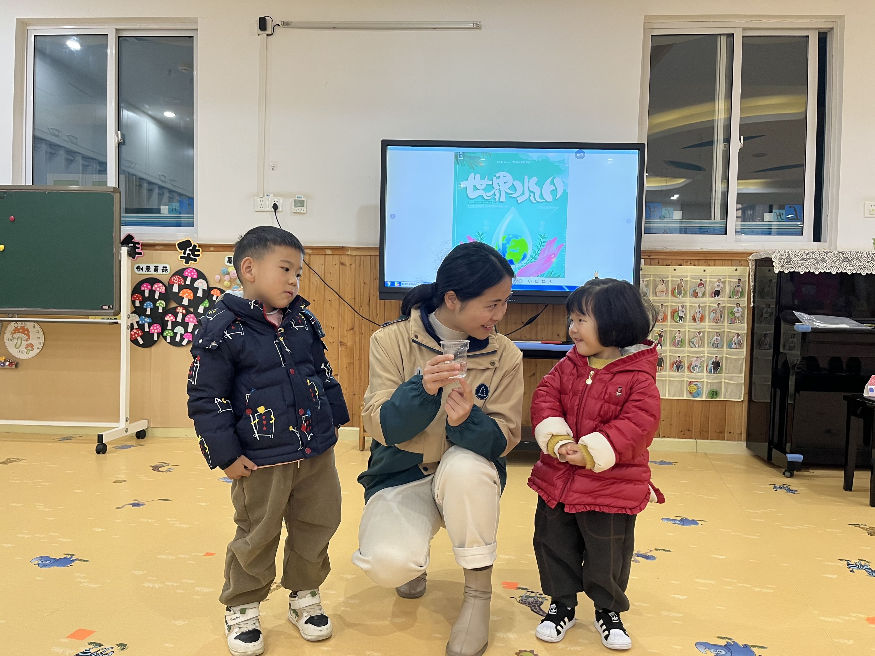 水的奥秘到底有多少呢?教师们利用图片、视频等资料,向孩子们介绍了水的奥秘,并引导孩子们知道地球上水资源紧缺的现状,让孩子们知道如果地球没有了水,世界将是一片荒凉,一切生物也将不复存在,人类也将无法生存。