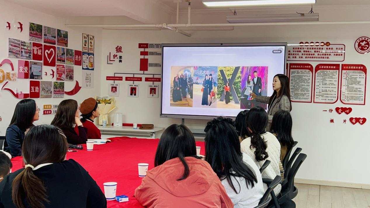 车谷融媒3月23日讯 近日,沌阳街红升社区联合武汉商学院艺术学院服装与服饰设计系,为辖区全职妈妈群体带来一节生动有趣的家庭服饰搭配美学课程。