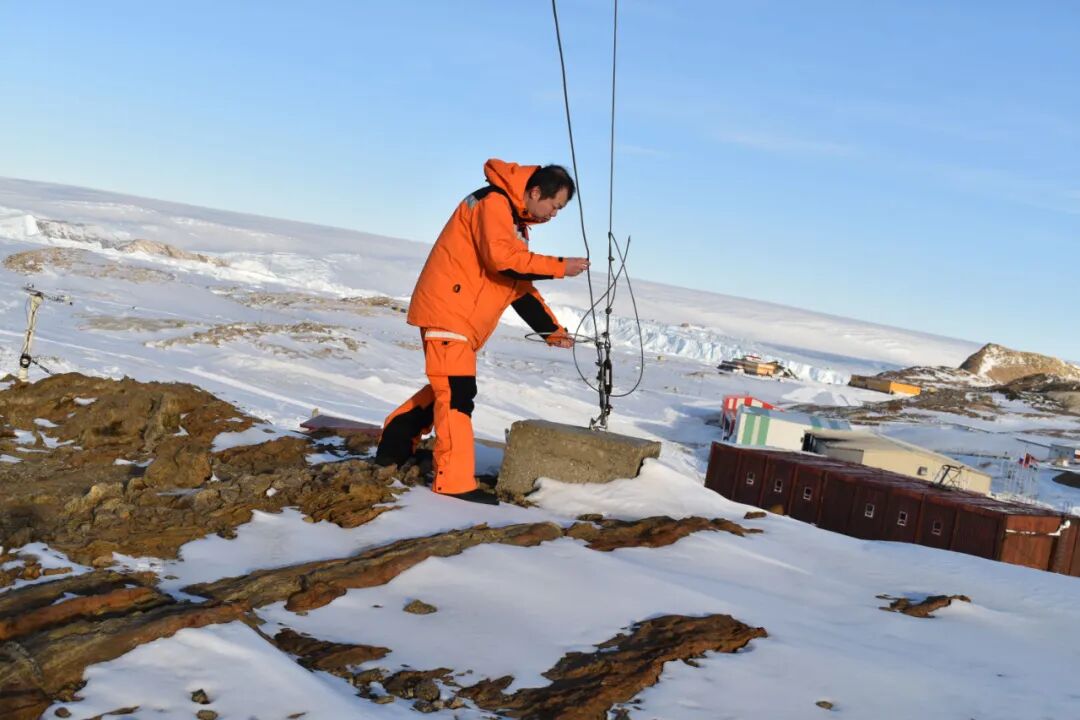 一到中山站,祝伟就对设备间的线缆进行了检修加固,“风雪大,设备电缆容易受损,风杆10米高,如果损坏了就得爬上去检修,那是相当危险的”。