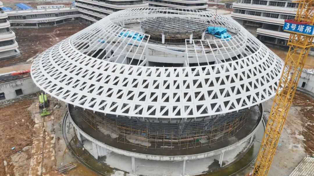 据介绍,这栋圆润建筑楼是该校区的计算机中心,建设难度较大,幕墙均由全双曲面玻璃和铝板拼合而成。“结构、幕墙设计都经过反复地优化,不断与设计单位、施工单位沟通,专项讨论会十余次,前后修改建设方案6次。”看着“拔地而起”的建设楼,程经理说,“接下来,我们将严格管控项目整体进度,确保武汉理工大学车谷校区如期开学。”