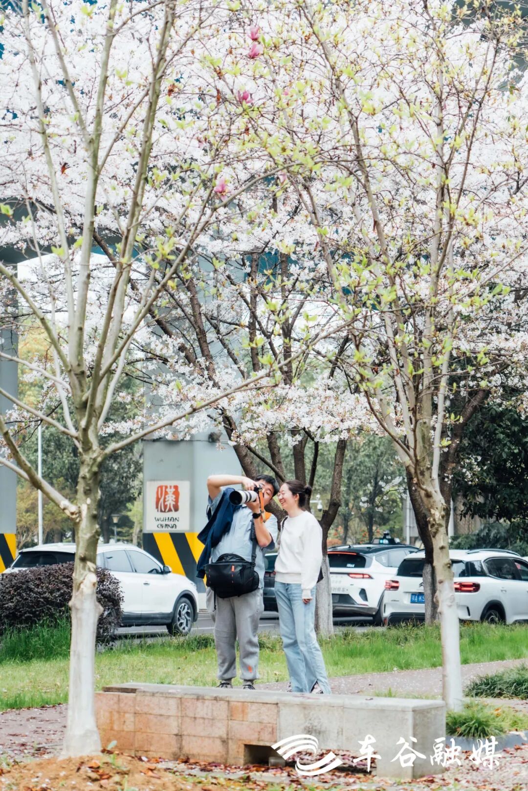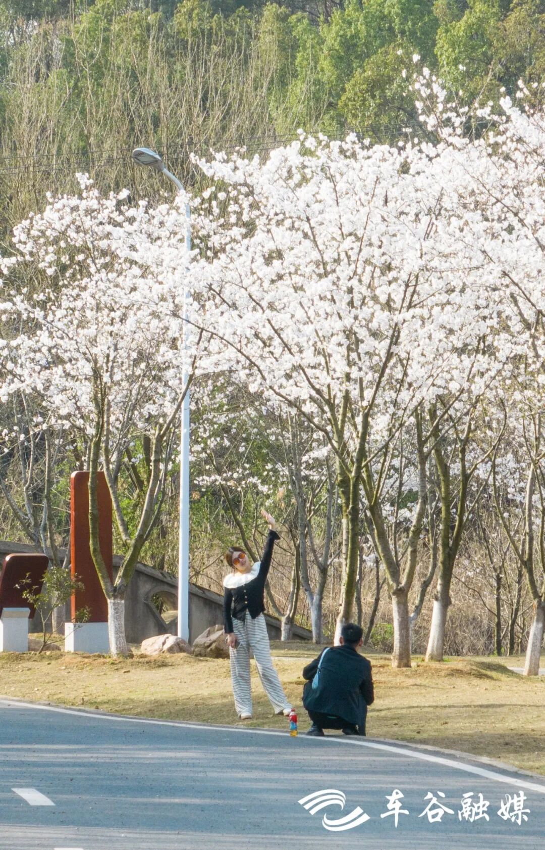 市民们纷纷拿起手机、相机,在樱花树下合影,定格美好时光。